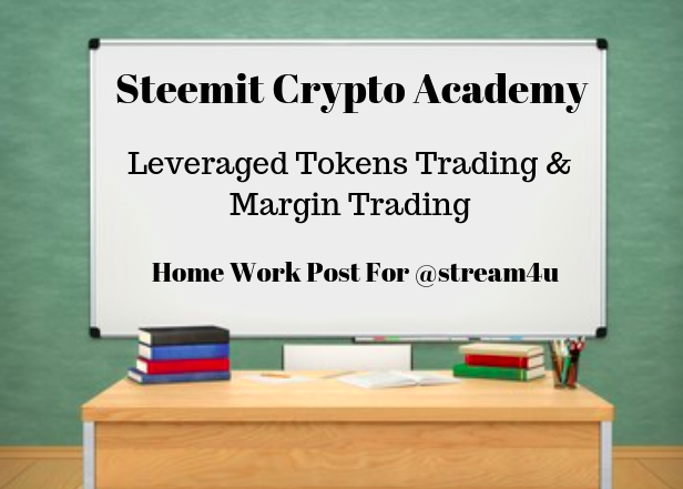 In today lecture I have learned so many new things and I have tried to explain all by myself, margin trading and Leveraged token trading are very profitable and at the same time they soo risky to trade every one should first learn completely how it’s working and then put some money to learn how to trade on those trading marketing, it’s not good to just put all money in the start in greed and loos in just moments of time everything needs good research and proper plain hopefully you have learned a bit from my homework post.