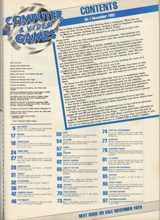 The very first issue of Computer And Video Games Magazine (C&VG) Published way back in November 1981