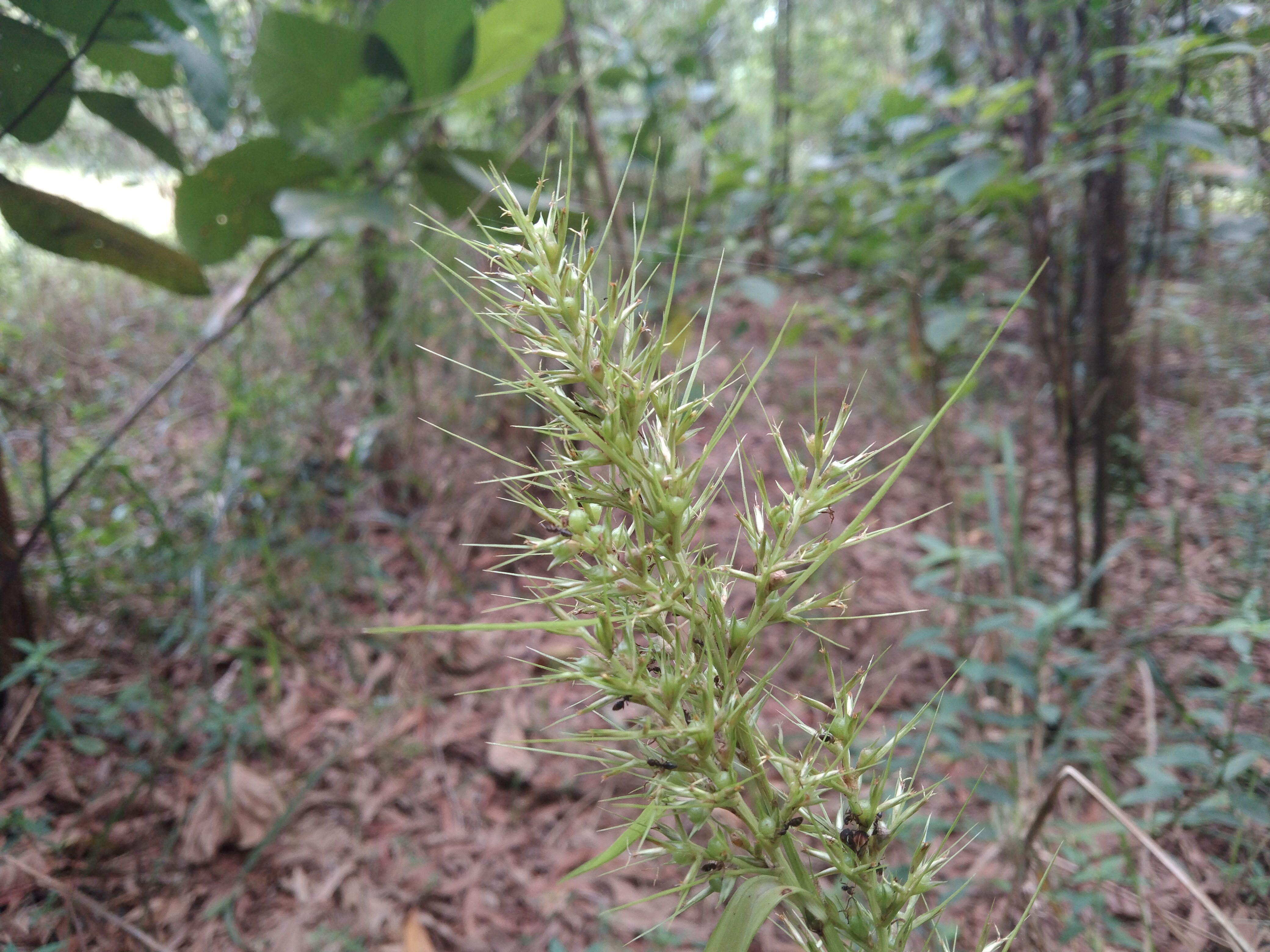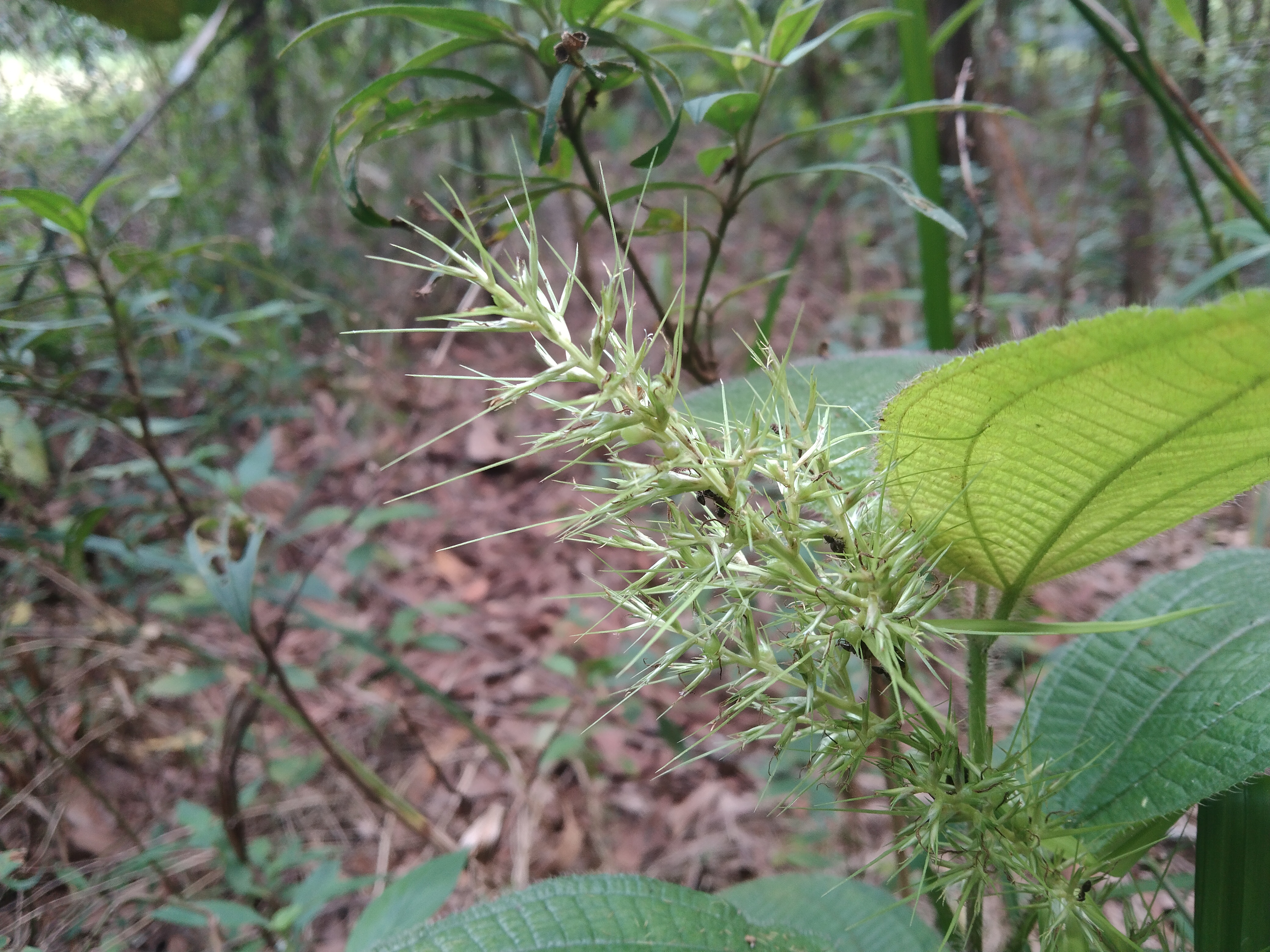 The depth and diversity of nature are revealed The mixture of dry leaves and green plants on the ground highlights the balance of nature This image reminds us that in nature the new and the old come together to create a wonderful balance We see a sharp thorny plant that has merged with the rest of the leaf world The green leaf cover and the fine thorns make it more attractive Its thorns are a symbol of self-defense as well as its color and structure it seems like a unique work of art of nature.