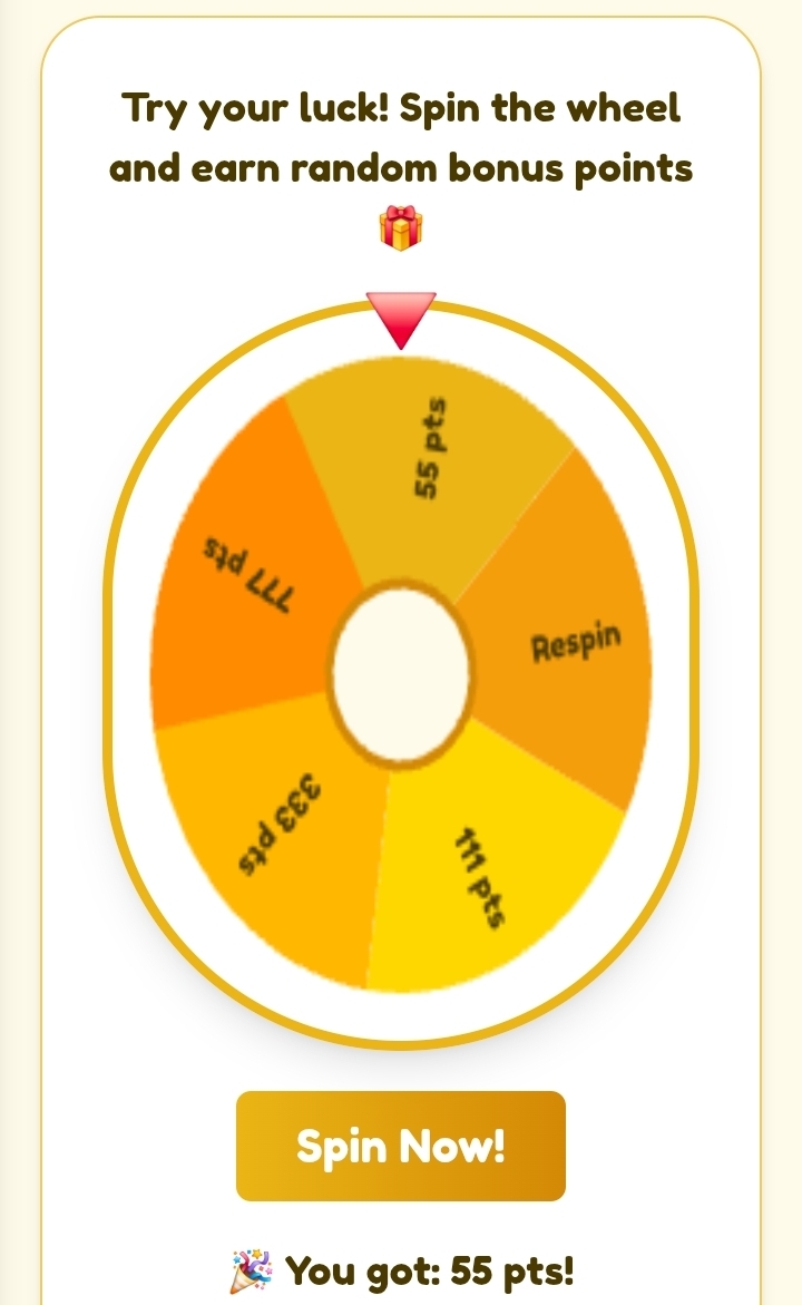 I move to my favourite part of the game which is the spinning part of the game I spin and claim my points as the rewards.