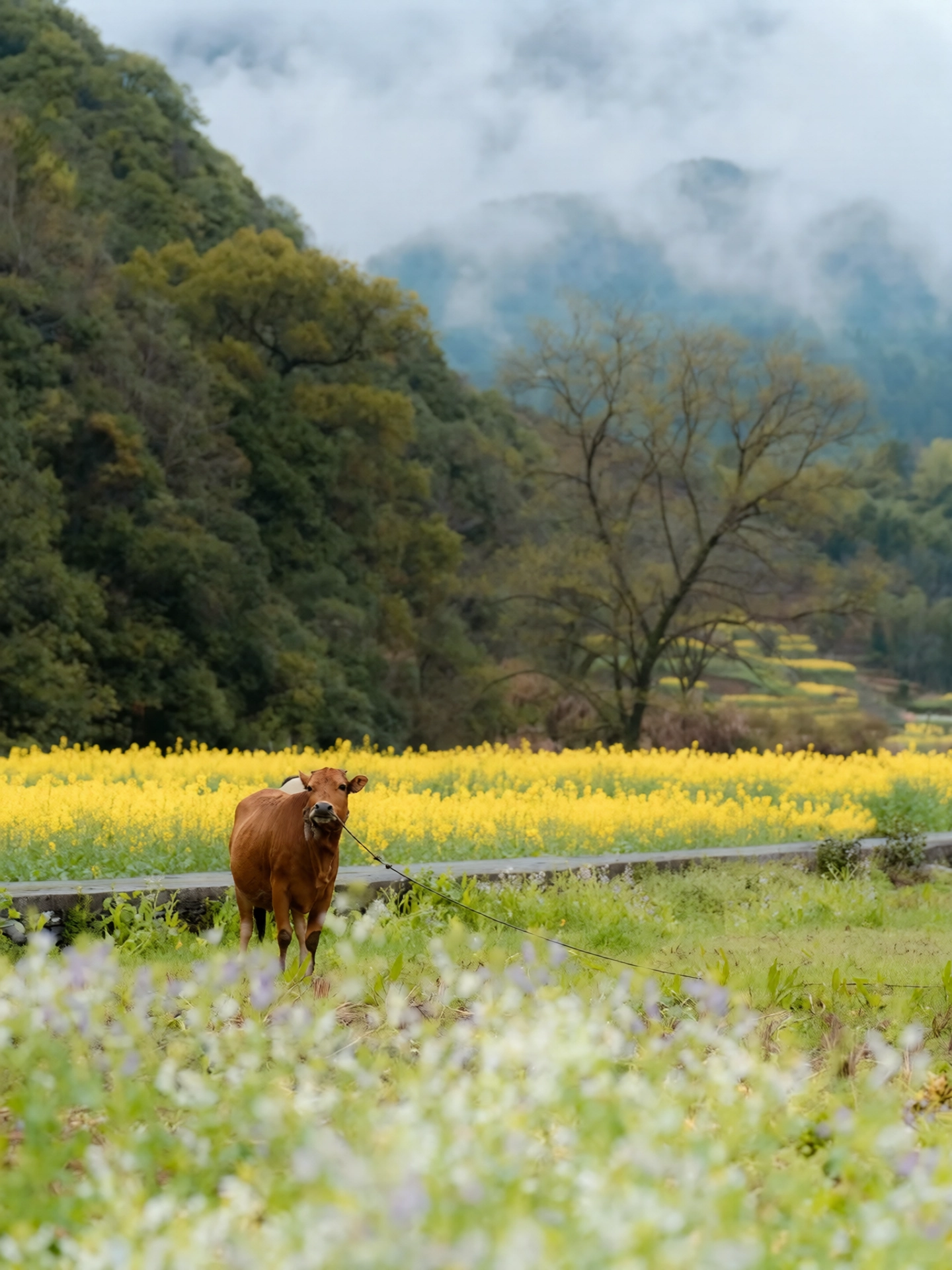 Tucked away in the mountains of Wuyuan, Hongguan Village feels like a forgotten page of time. White-walled houses with dark tiles stand in quiet grace, while a gentle stream winds through the village and bamboo shadows sway with a soft whisper of years. Free from the noise of the world, it carries a calm and unhurried charm. Walking here feels like stepping beyond time itself, where only the wind and your heartbeat remain. There is no deliberate grandeur—only the pure rhythm of life, guarding a long, tranquil dream amid the mountains.