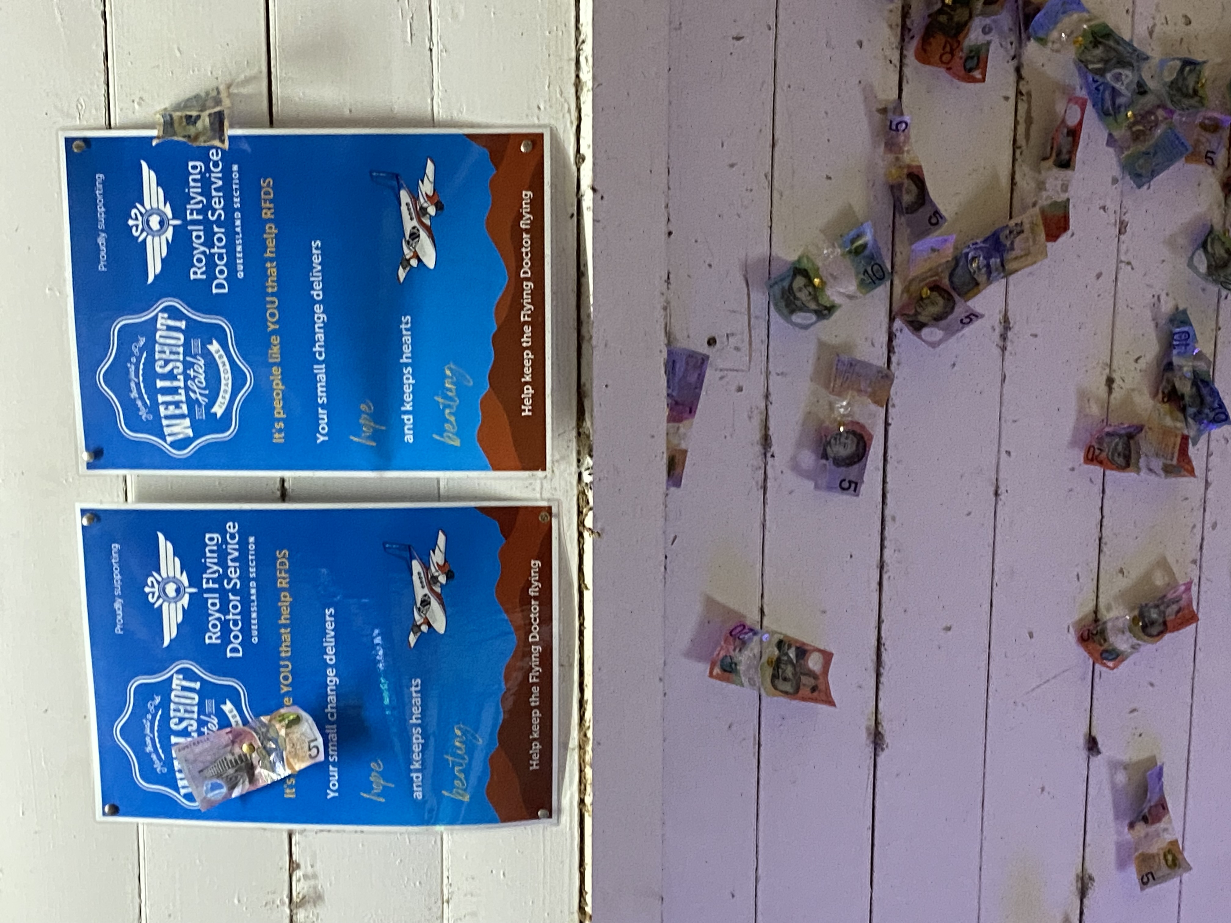 At Ilfracombe which is a few kilometers east of Longreach in outback Queensland is the location of the quirky Wellshot Hotel. Money stuck to the wall, humorous seats and quaint decorations are among the attractions of this great country hotel.
