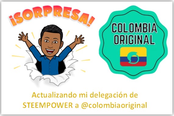 Actualizando mi delegación de STEEMPOWER a @colombiaoriginal por @Chucho27, Club5050 y (15% Colombiaoriginal)