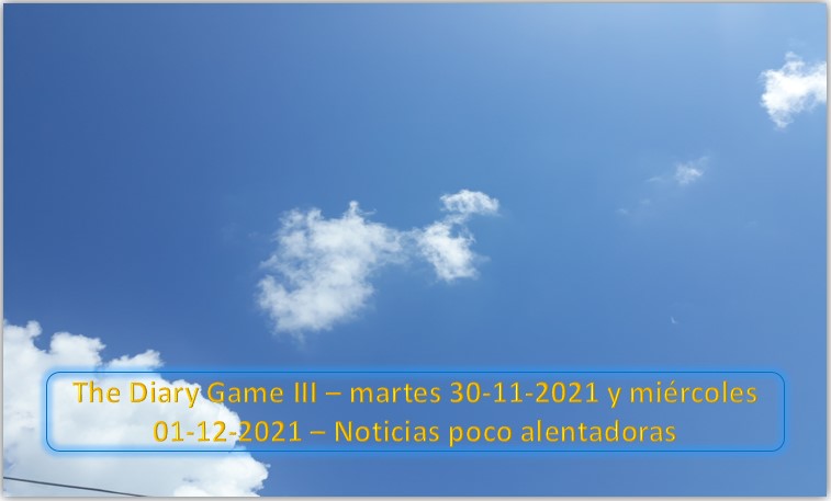 The Diary Game III – martes 30-11-2021 y miércoles 01-12-2021 – Noticias poco alentadoras. // club5050 (15% colombiaoriginal)