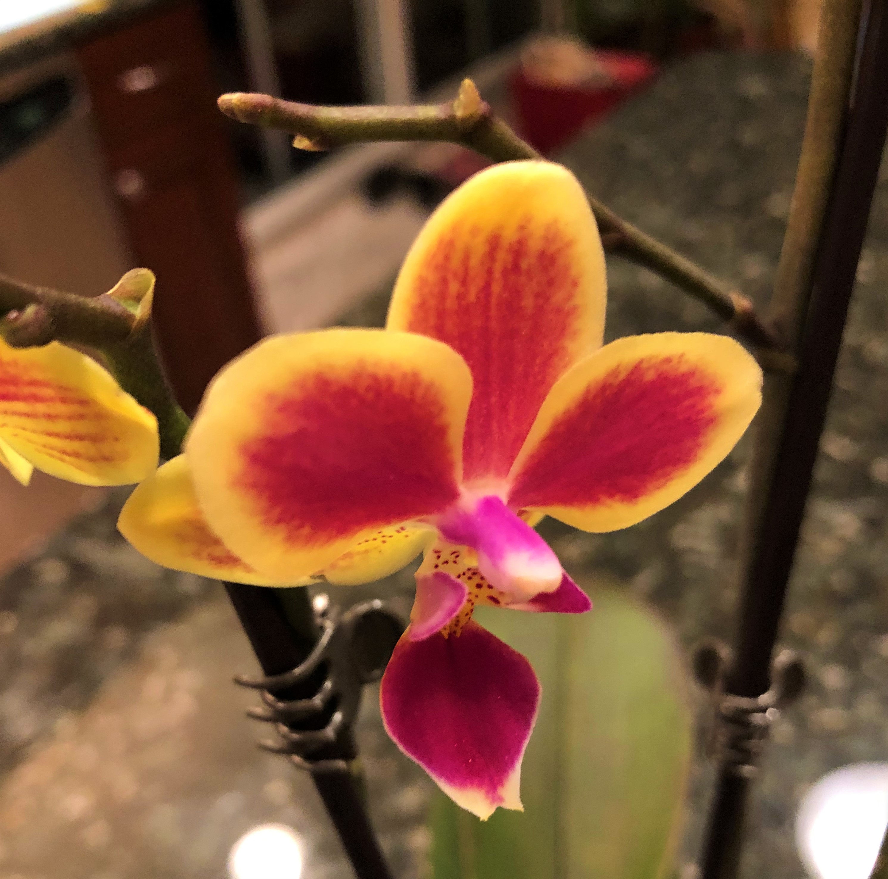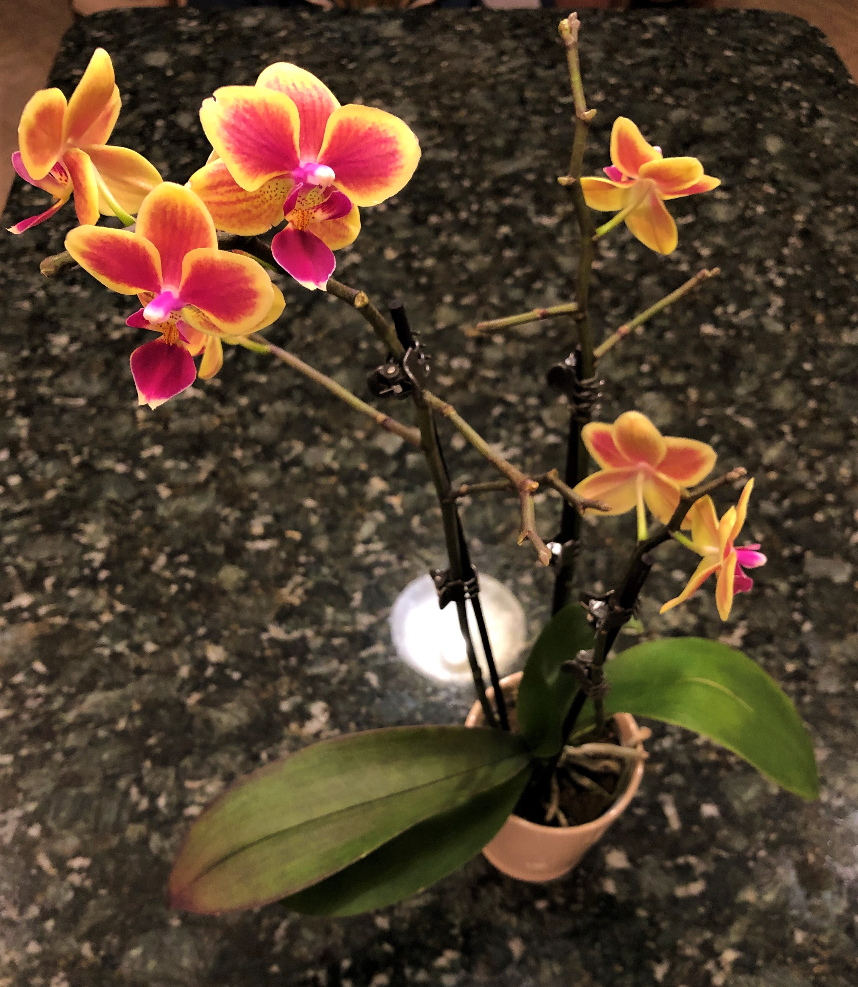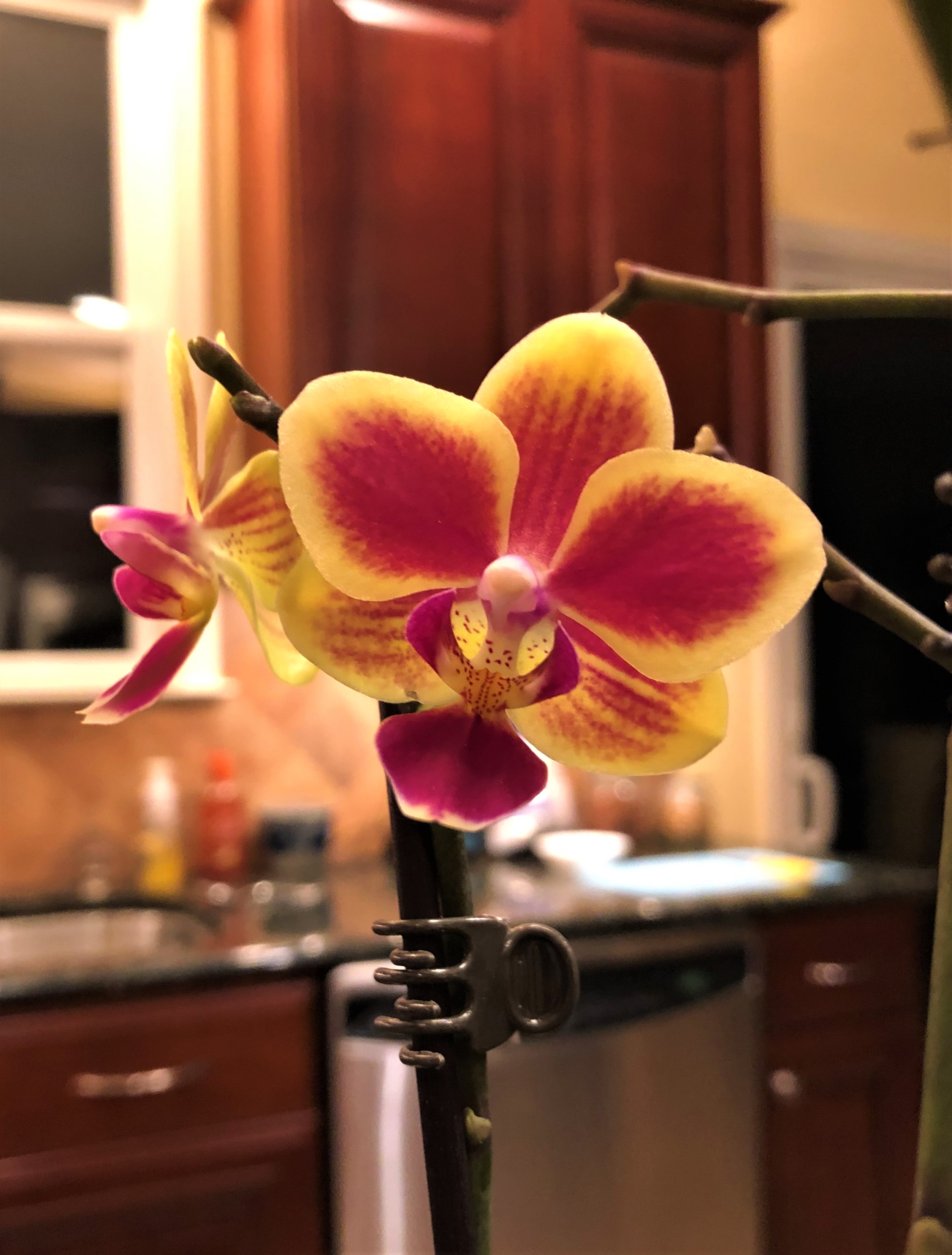 Beautiful flowering orchid, always adds beauty into a home. Glad you have an area where you see them all the time. Hope your new addition brings years of happy blooms.