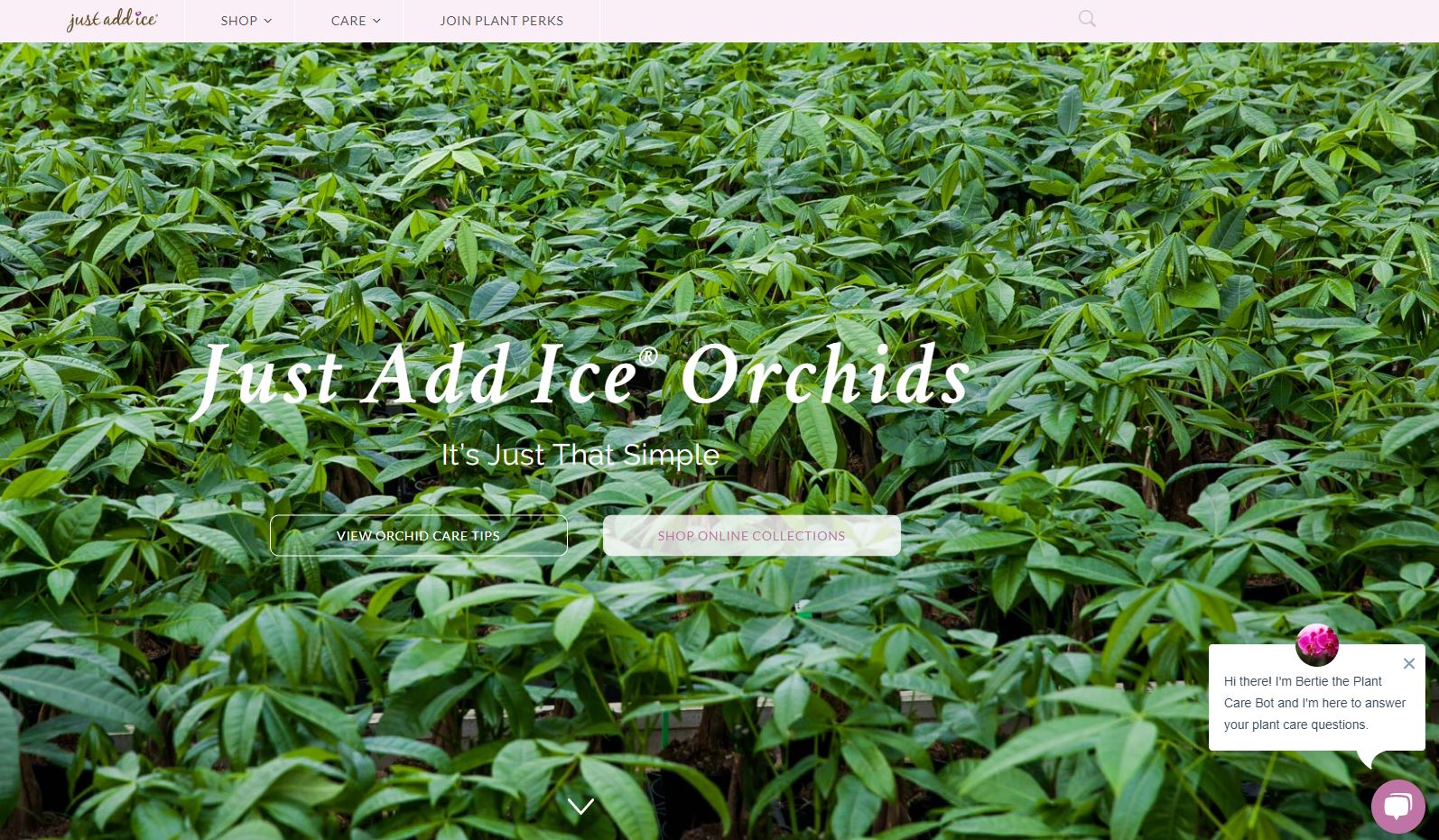 The website, JustAddIceOrchids.com, was pretty cool I thought. Even thought their cover photo didn't appear to be Orchid plants [?? Unless I am mistaken] They did have 'Bertie' The Plant Care Bot! This neat little bot answers all of those questions that keep you up all night.. You know, the ones about Orchids!