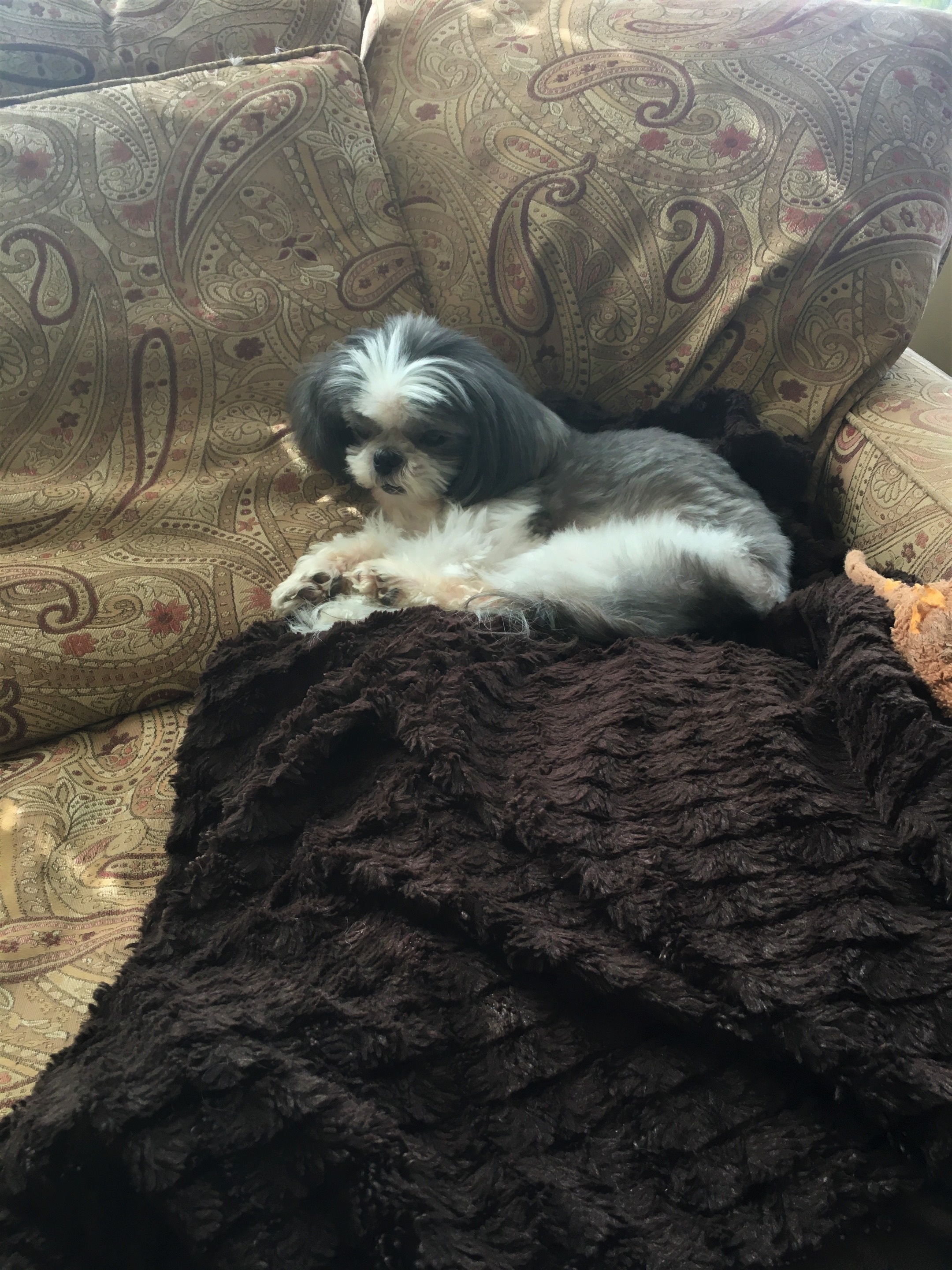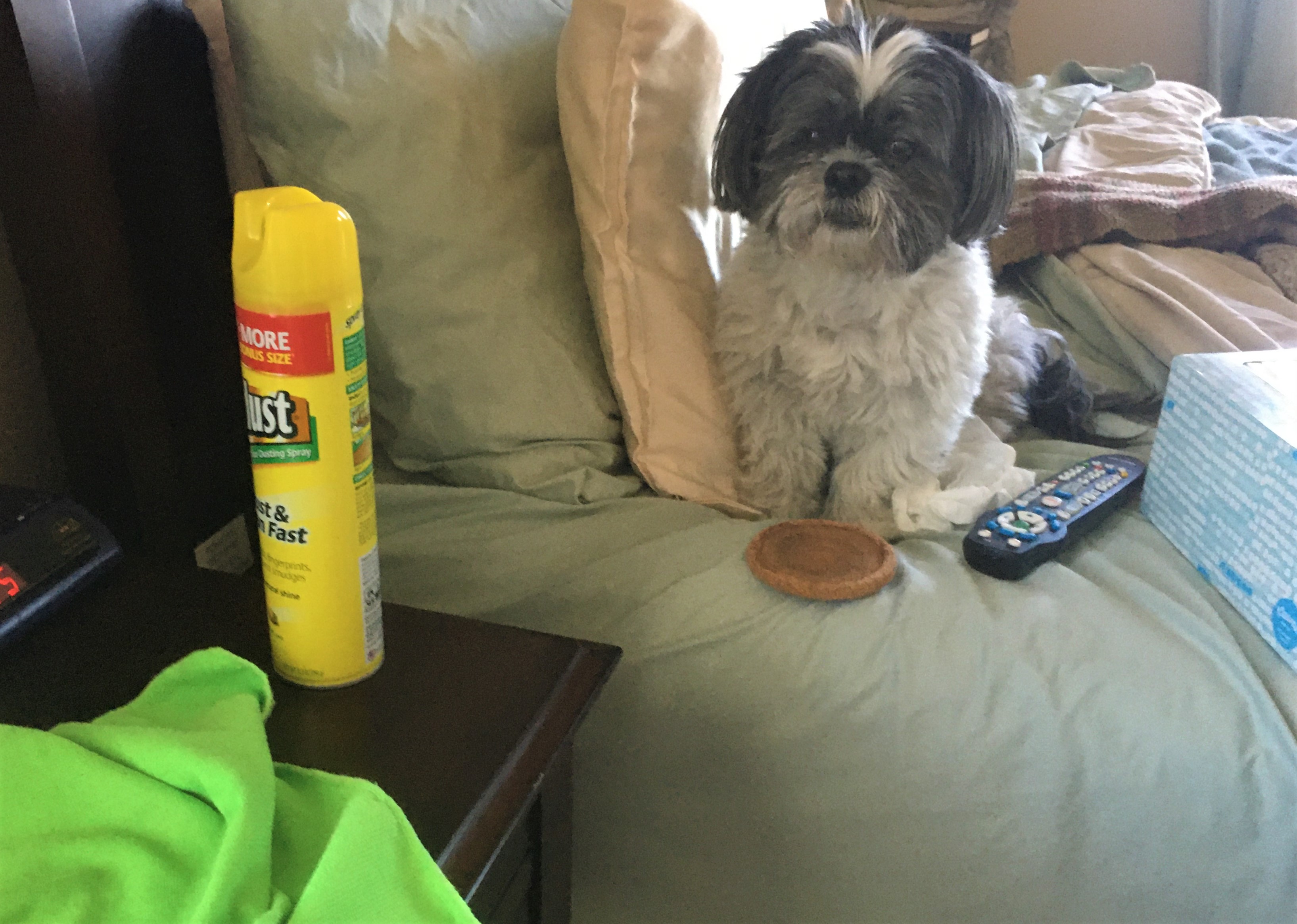 I'll just sit here for a few minutes and relax after the cleaning frenzy. The dogs join me in hopes I forgot about taking them to the groomers. Luckily they are quite small and the chair is big enough for all three of us. "Don't get too comfy guy's.. we need to get you to your appointment soon."
