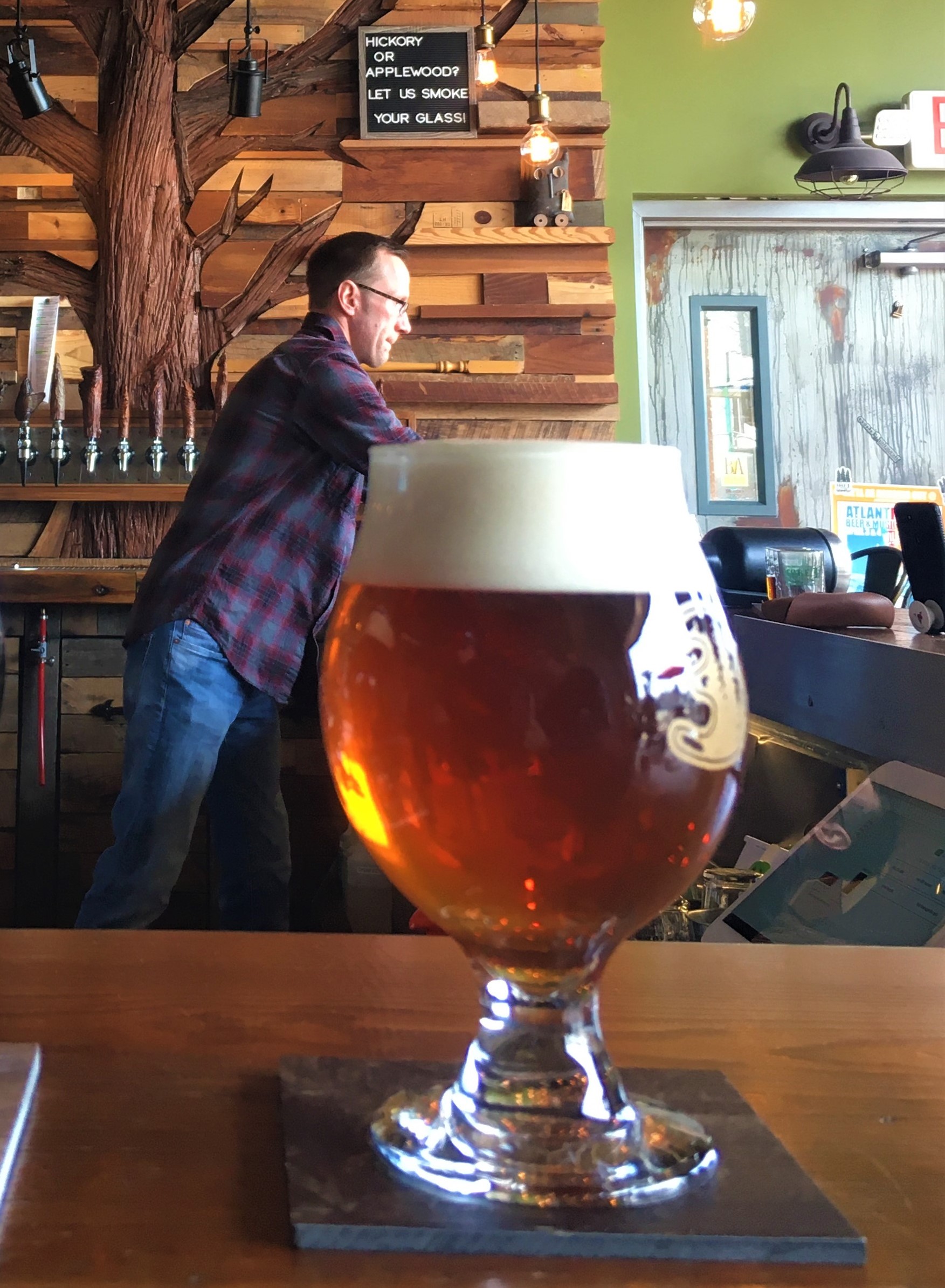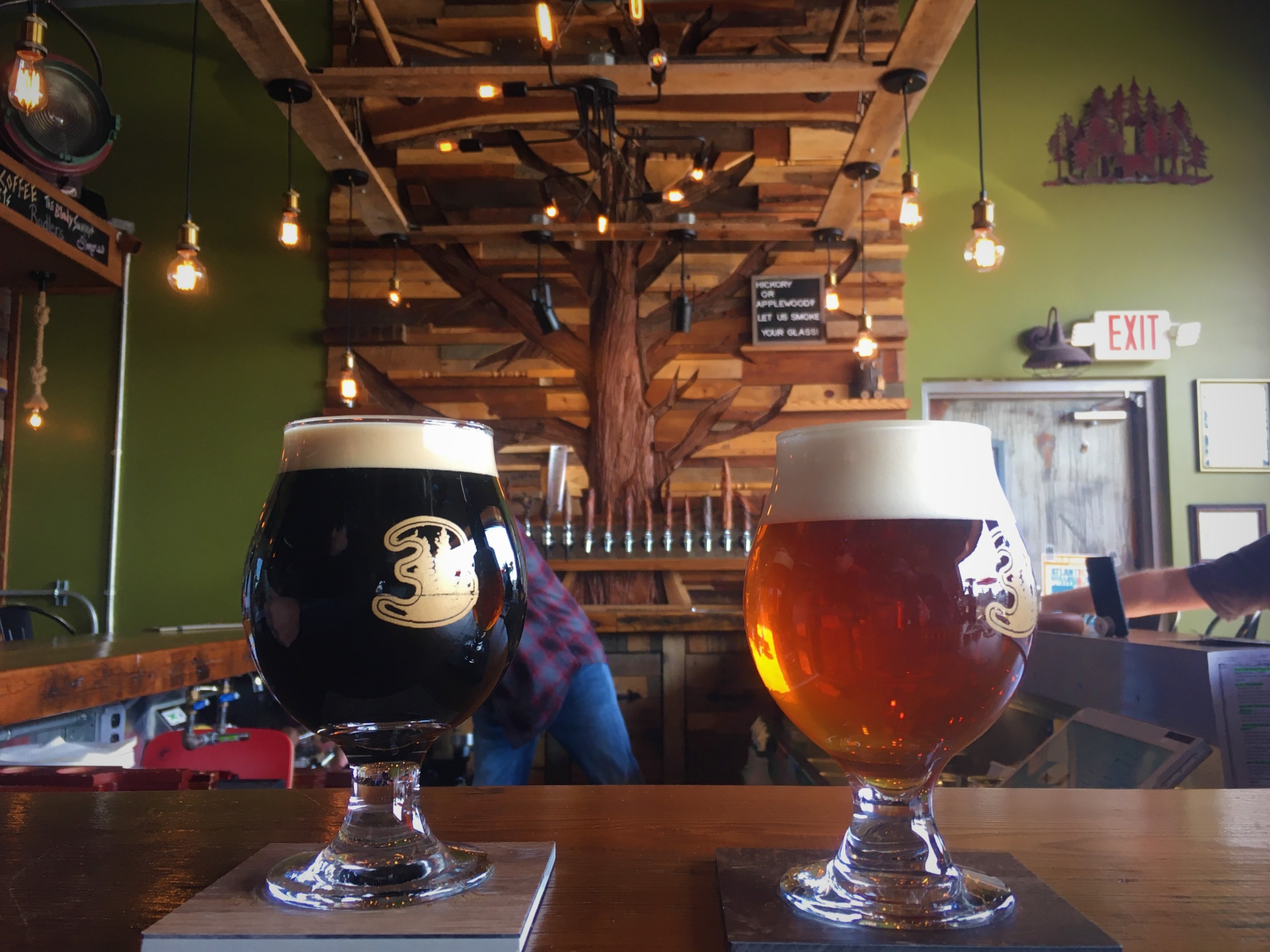 I ended up getting the Hearthside (right) and my cousin got the Therapist (left). Mine was a bit smokey which I actually liked quite a bit more than I thought I would. They will also smoke your glass with Hickory or Applewood if you want, but I decided that the smoked brew was enough for today.