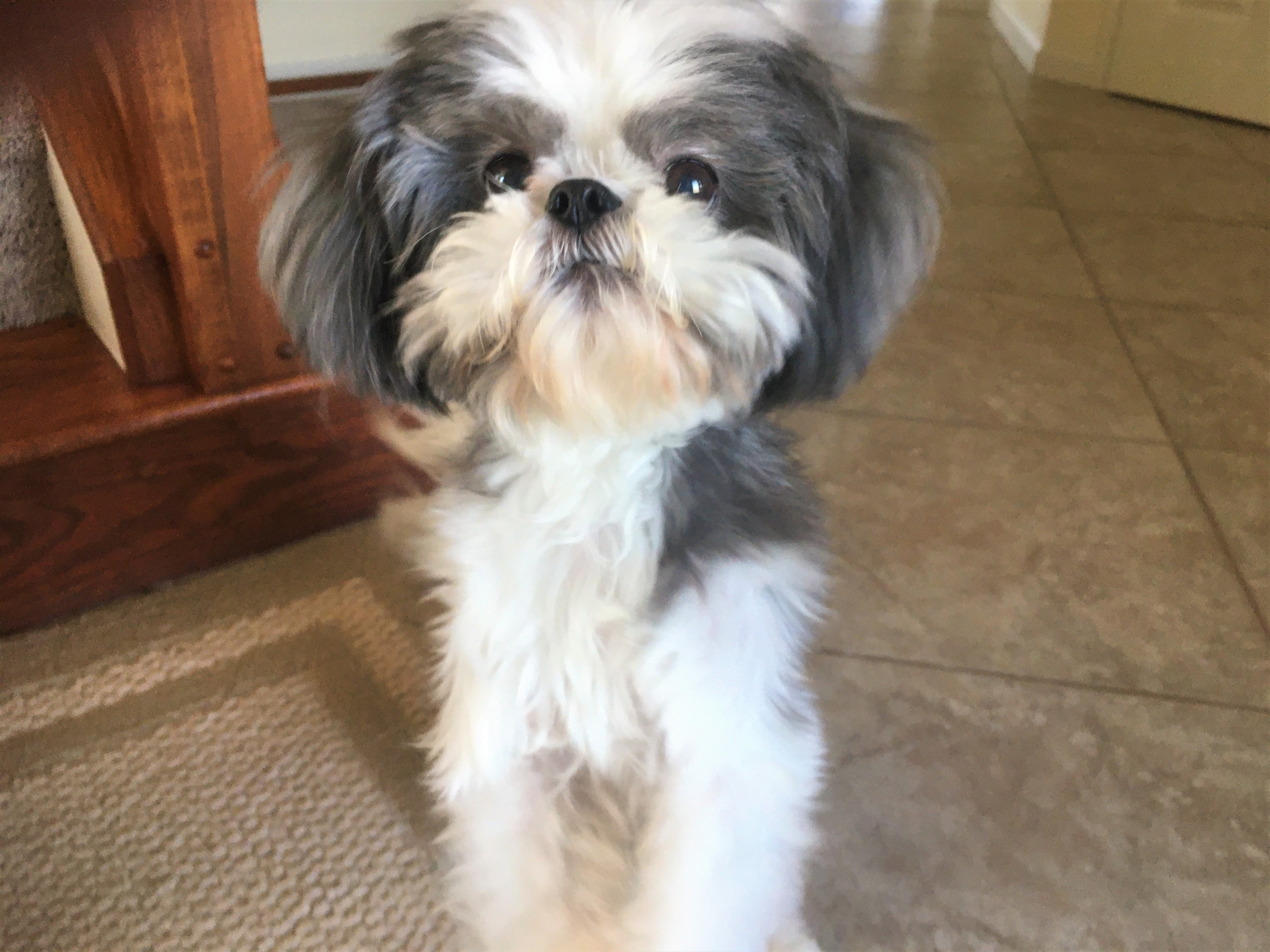 Pepper just stays in one spot. He couldn't here me say "cookie" due to his deafness. Oh well, he'll figure it out soon enough.