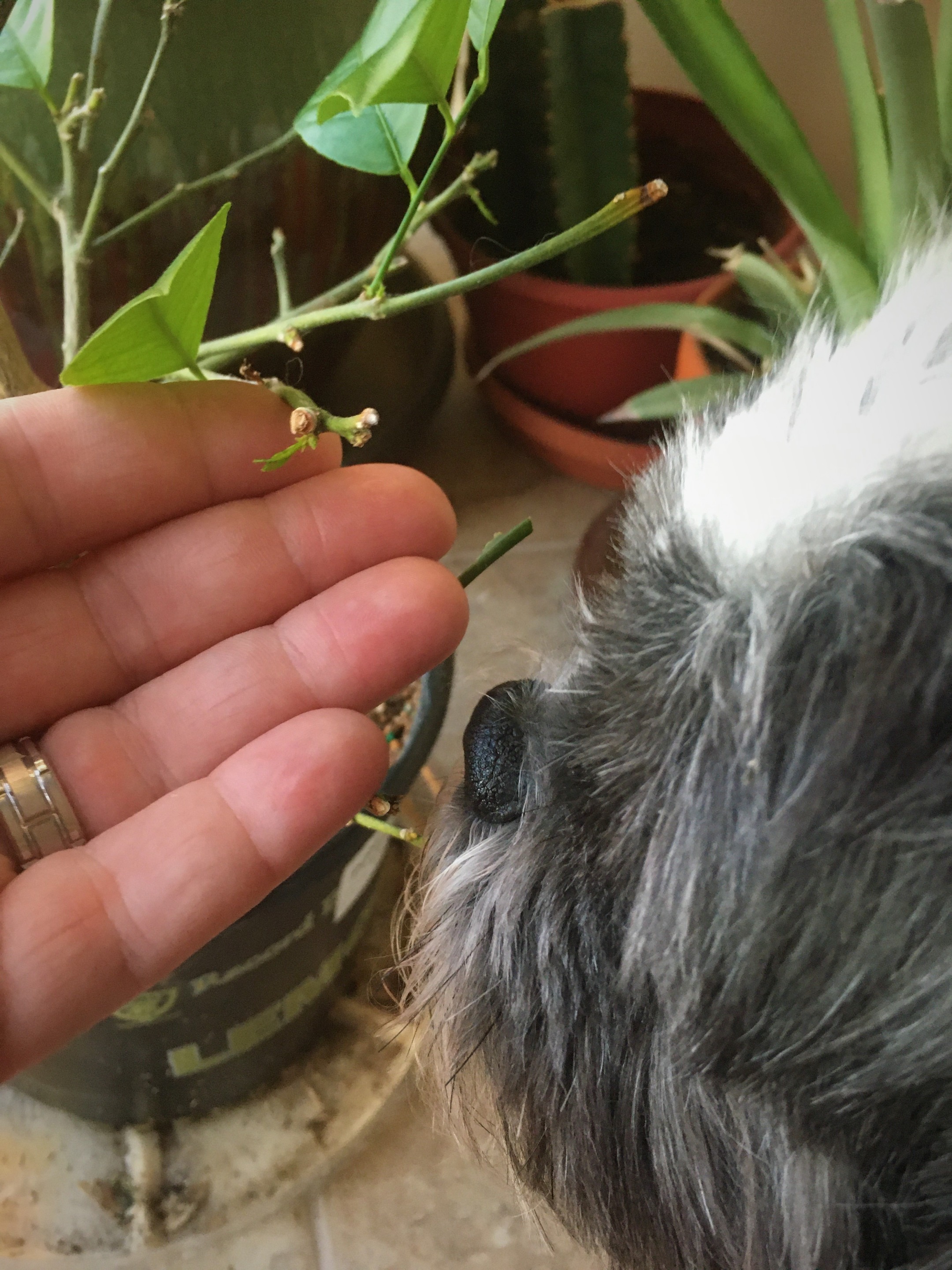 And Pepper is wanting a cookie for his time spent watching over all of these plants for Daddy. Good Boy Pepper!! Let's go get that cookie.