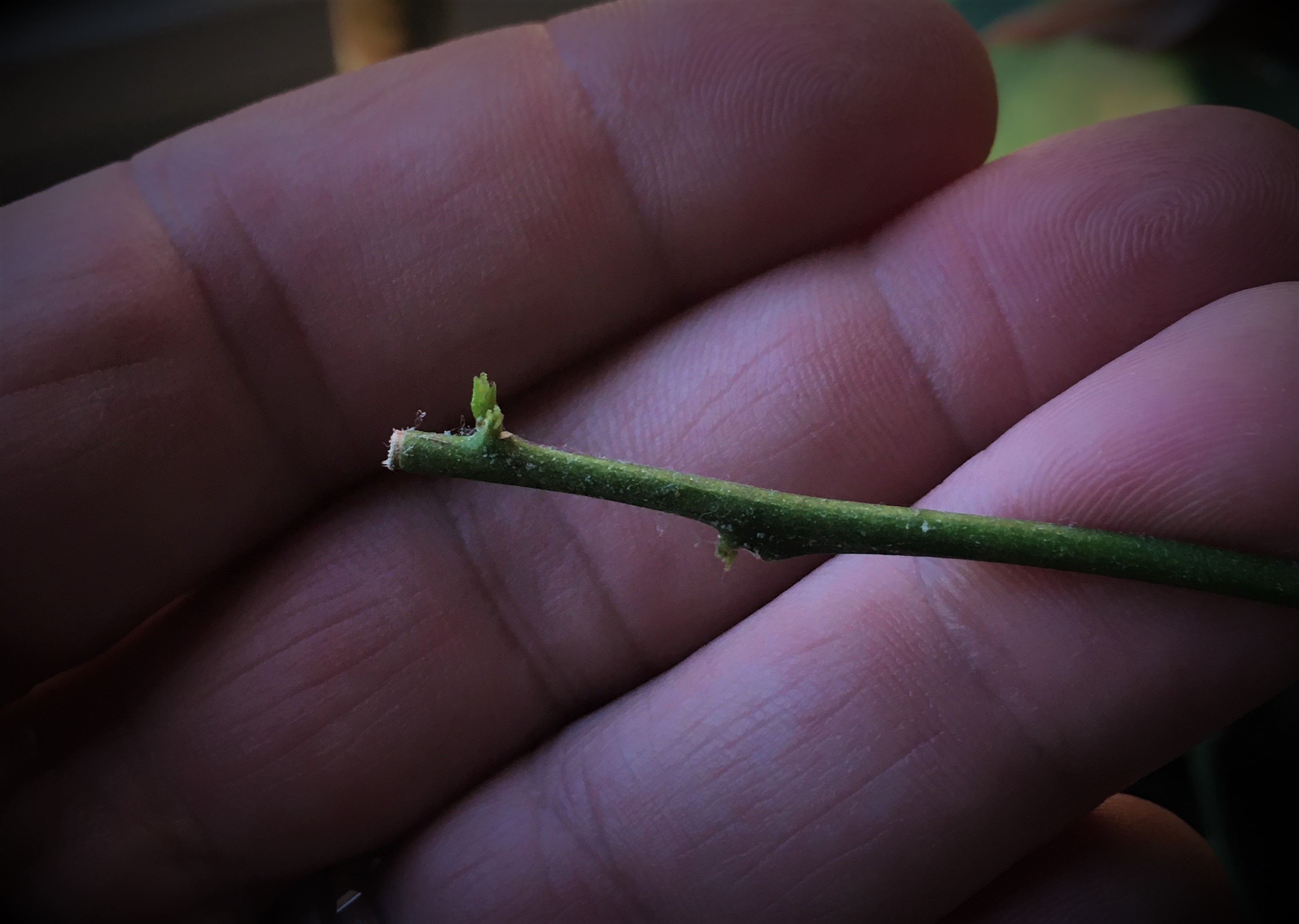 A close-up of the new foliage pushing it's way out of the newly formed buds. I would say in about a month we will have some flowers here too!