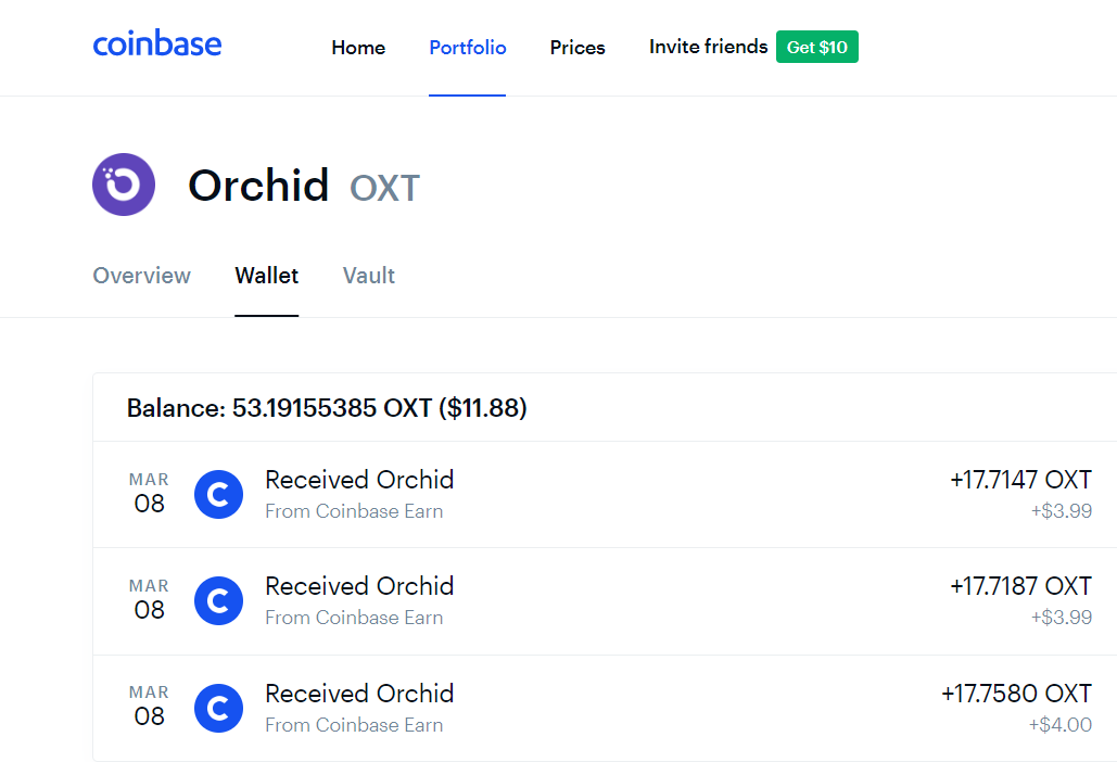 If you are interested in getting the basics about this new VPN service and the OXT coin you can view the short videos on Coinbase's Earn and Learn program. There are three short videos that will get you around $4 of OXT for each one. And there is a referral link you can share with friends that you can earn additional OXT if used. My referral link is directly below this graphic showing that I did indeed earn the OXT as promised.
