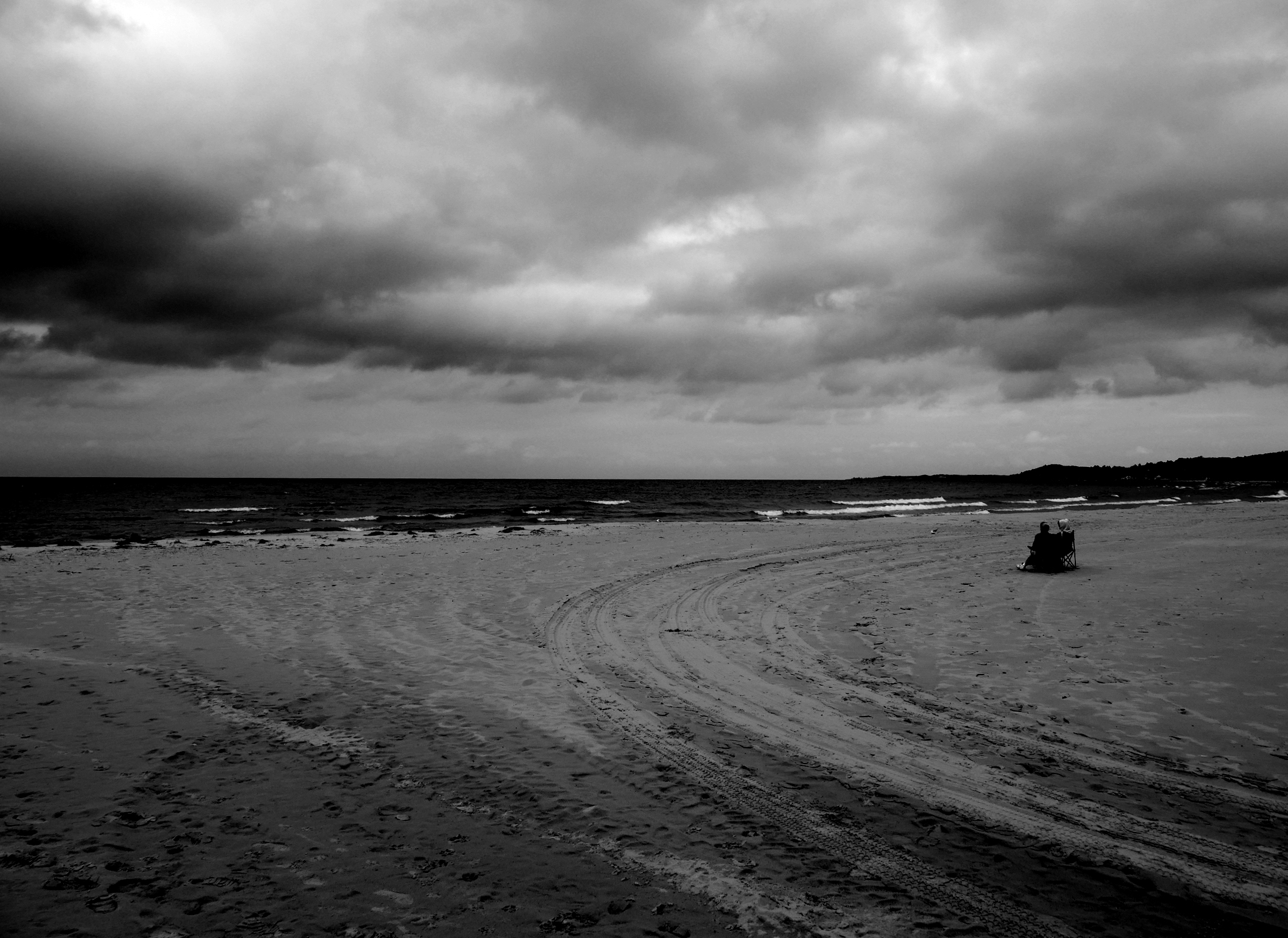 Or as in this shot, why is a couple wrapped up all alone on a chilly beach with a storm advancing...