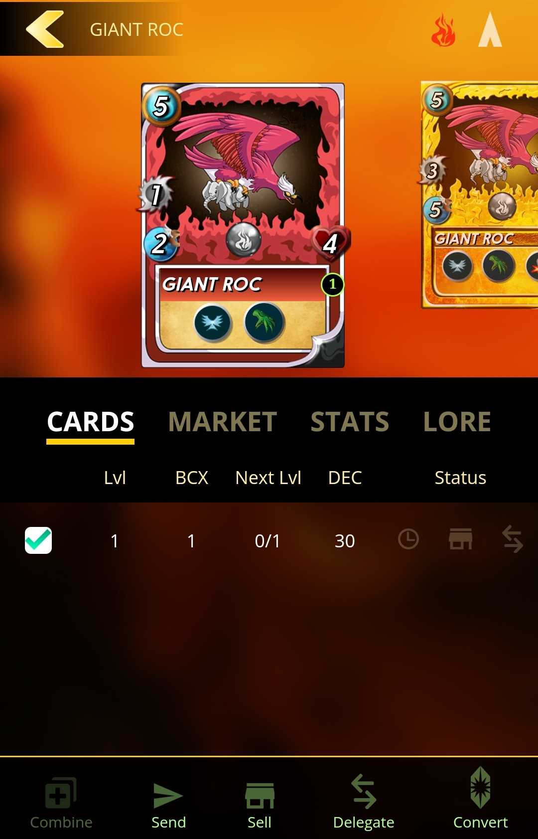 Ich konnte nur Aufsteigen weil @meins0815 mir einiges an Karten delegiert hat. Denn neben Karten kaufen/verkaufen, in DEC konvertieren, zusammen führen (aufwerten),kann man diese auch an andere delegieren. Man kann Sie auch gegen DEC verleihen bzw. ausleihen.