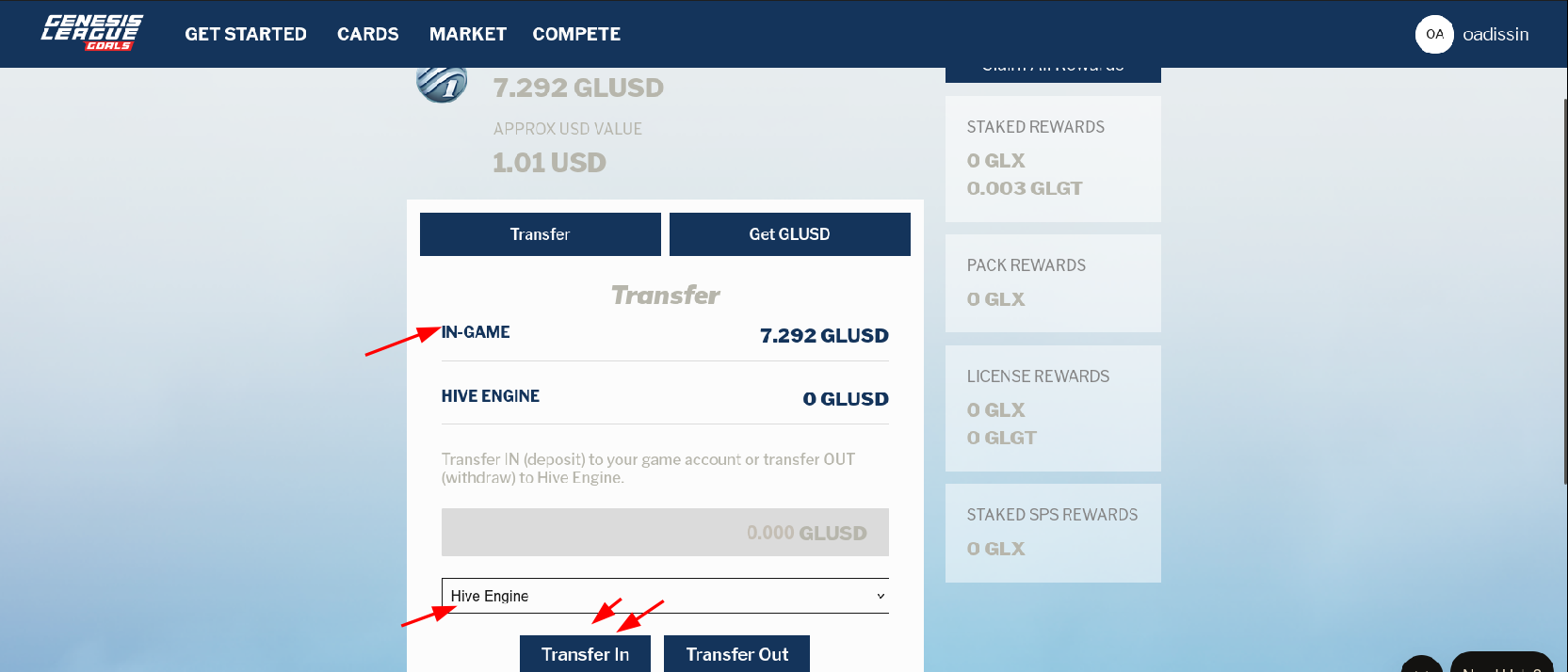 The transaction was smooth and I got the 7.3 GLUSD in my gaming account in few seconds.