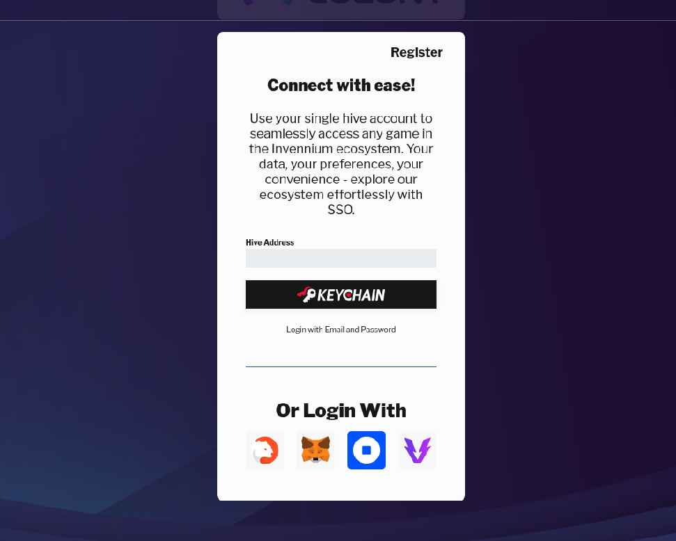 The registered account with email and password is also an option if you don't want to go to the Hive keychain way. In my option the email option will not offer all the power you need for the token interaction with the game market.