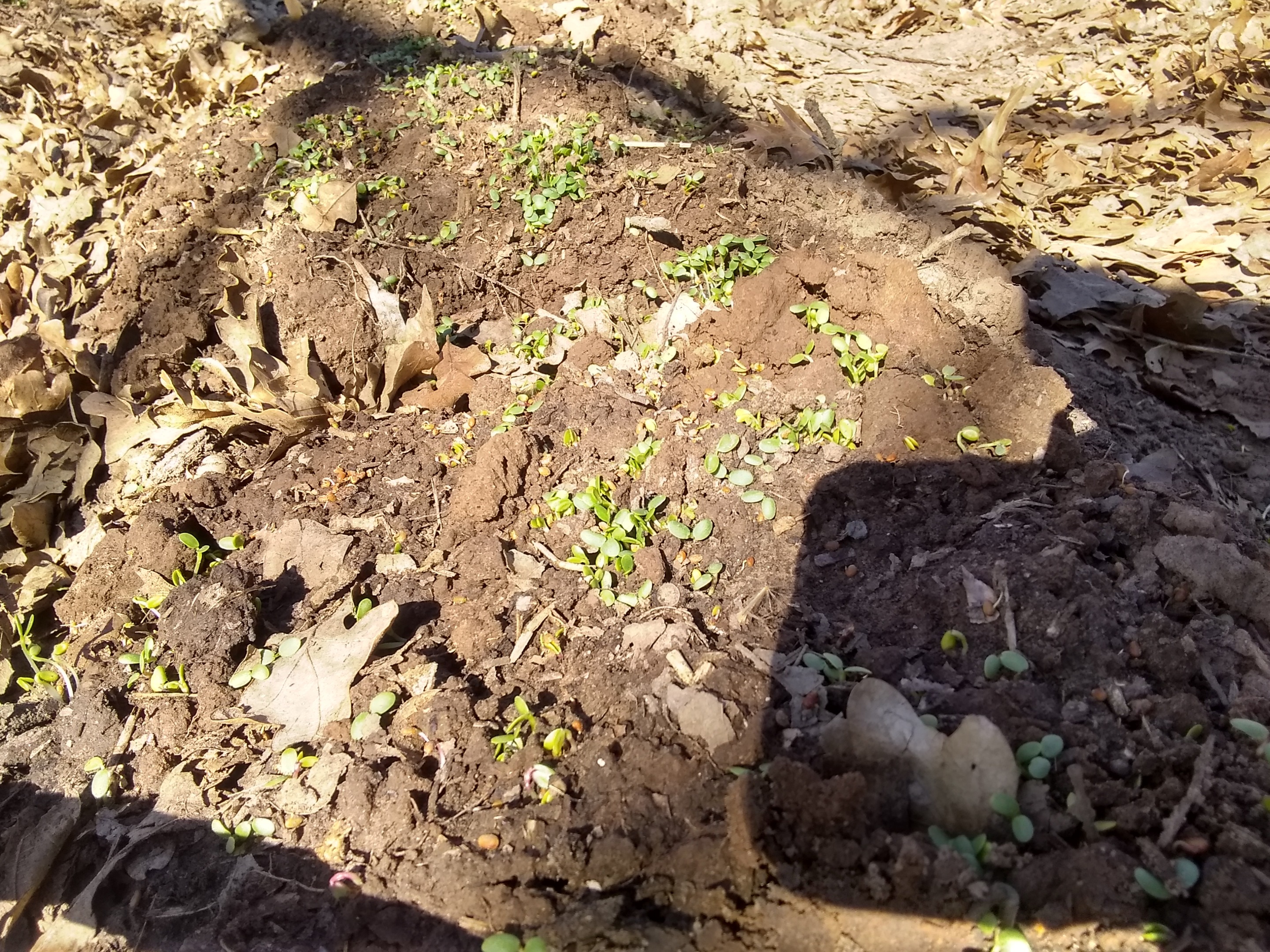 No corn yet! Of course, it's only been a week or so since I planted it, so I'm not sure what I'm expecting. The clover is coming on strong though. Song birds have been loving pecing in it and eating seeds and sprouts, and there's plenty to go around!