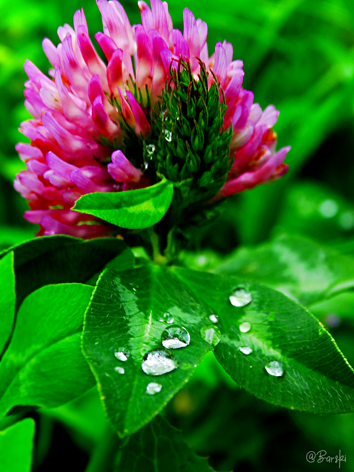 I took this photo one early morning and you can see drops of morning dew on the clover.