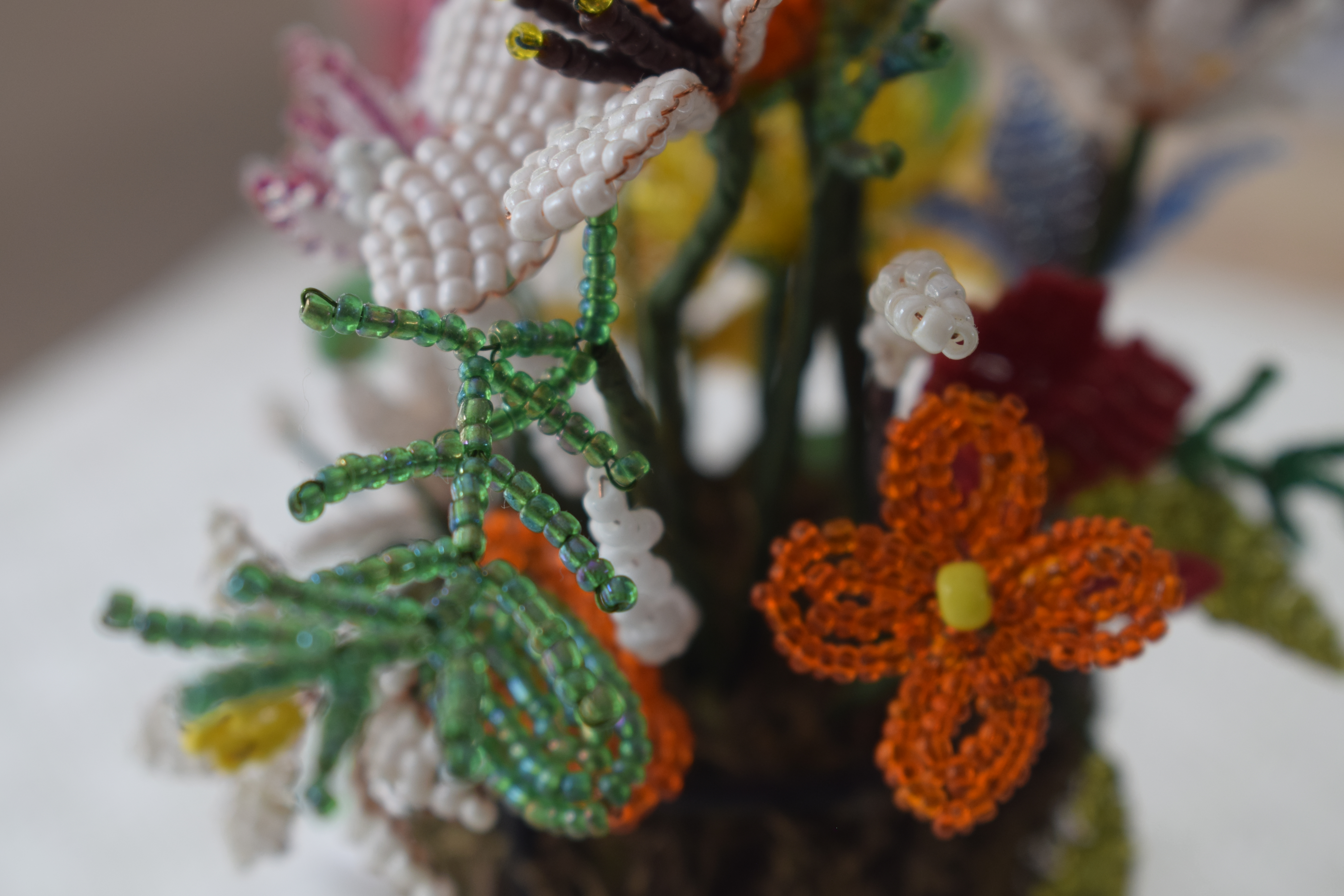 Is the jandmade the drops on the leaves. Theyshie like pearls I wonder if there's a reflection