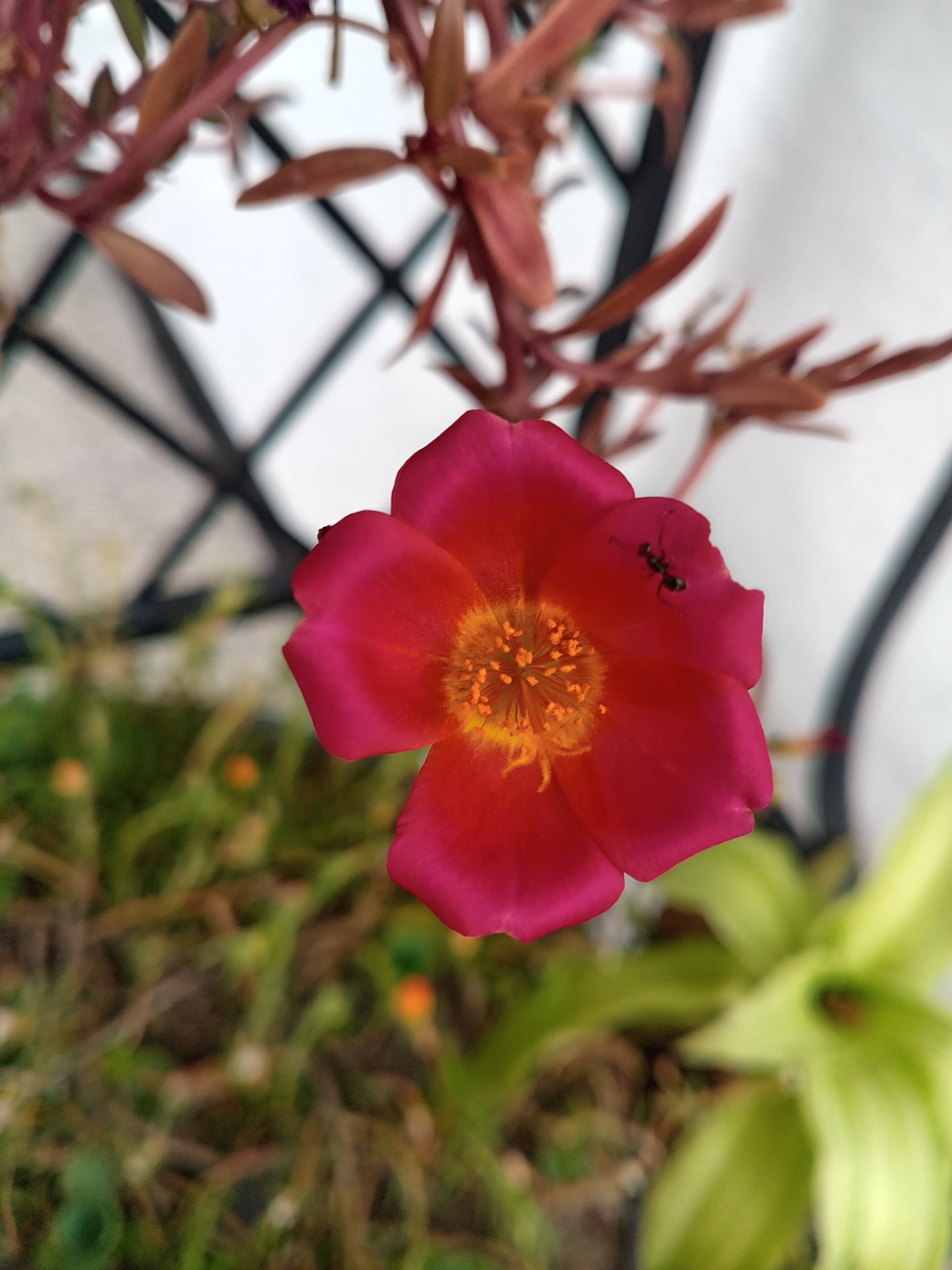 This is the portulaca grandiflora from my garden and a little ant visiting her, i hope you liked the photo i picked to you