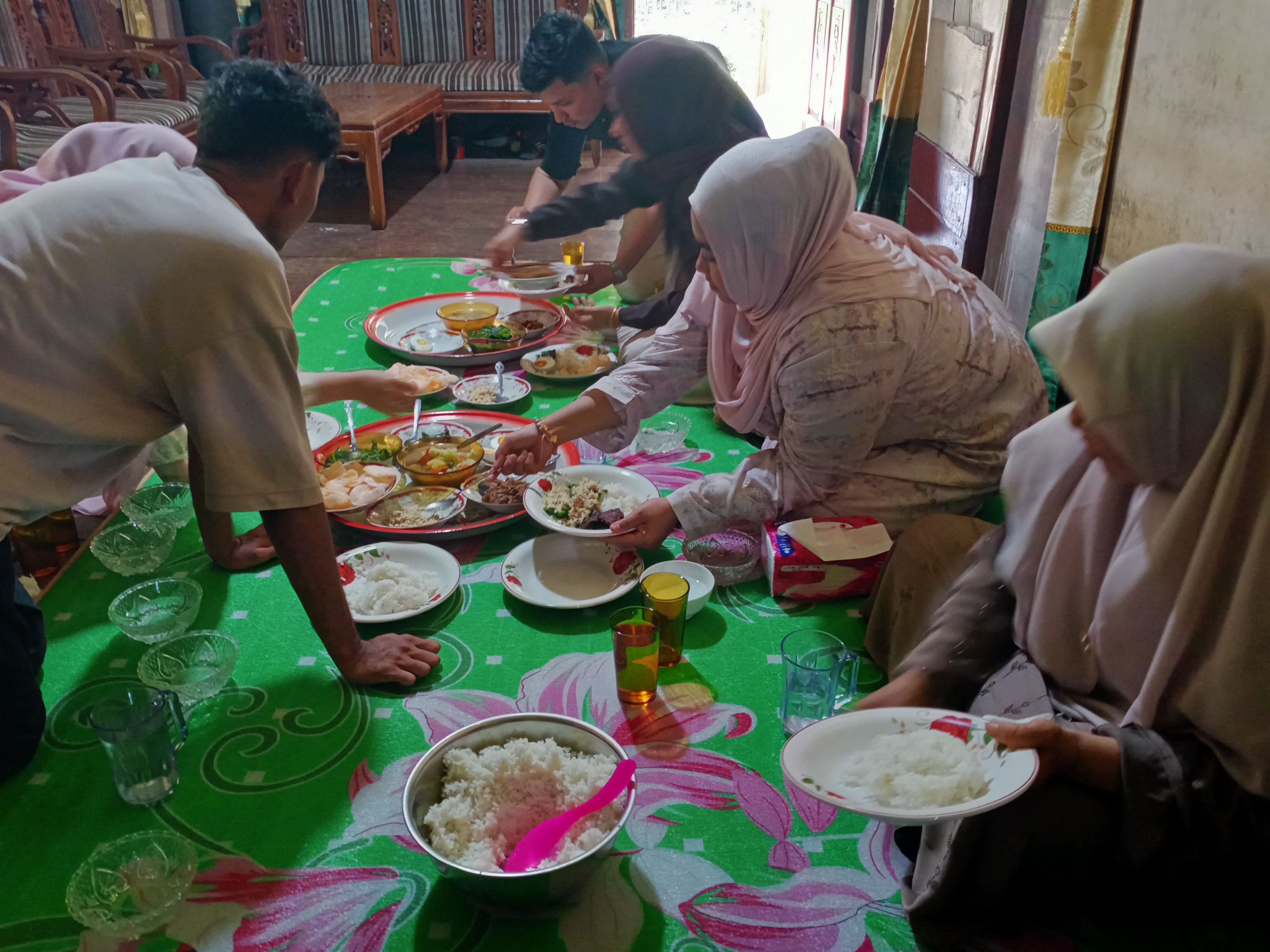 Makan siangMenjelang siang, saudara kami yang tinggal di Bireuen dan juga Lhokseumawe berkunjung ke rumah orangtua kami dalam rangka silaturahmi lebaran Idul Fitri.