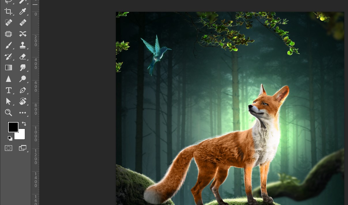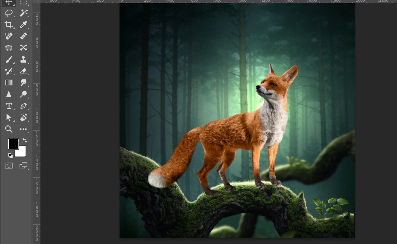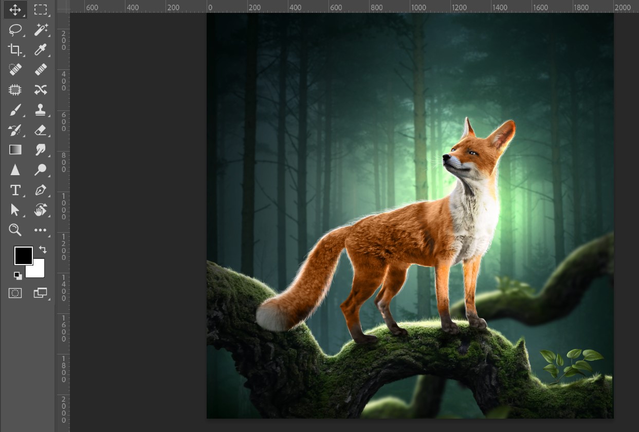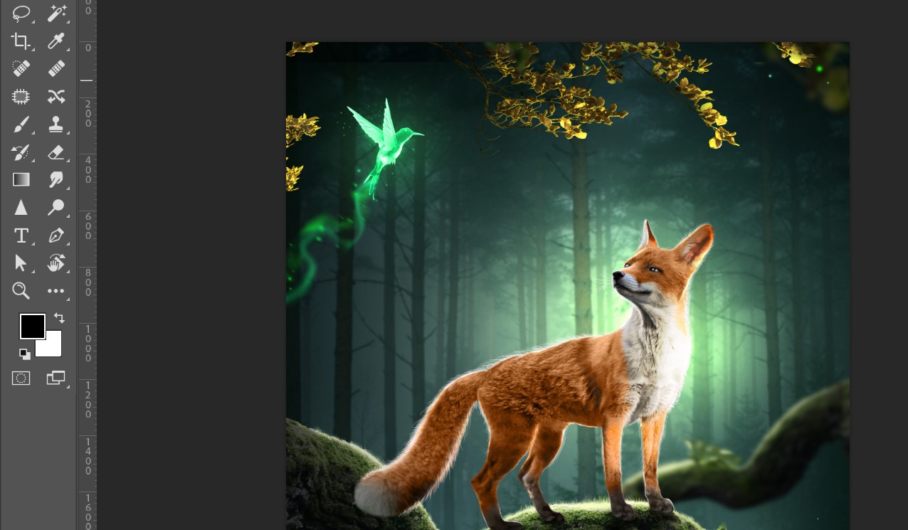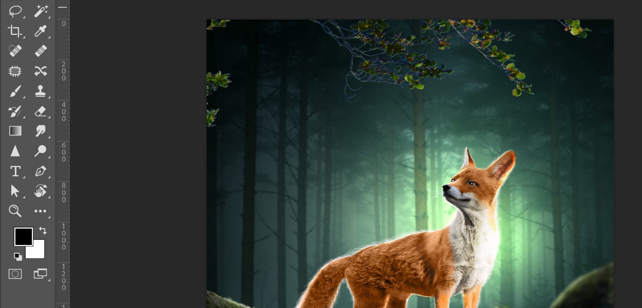 Then I added more lighting effects and placed a fox into the design.