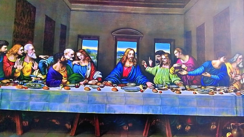Then after that, I had been not open the gift for a long time, which my husband's sisters had given us, so we hadn't opened it for a long time. It was made in the same way, so I thought why not unbox it today because I hadn't remembered about it for a long time as soon as I picked it up and placed it in the cupboard, it went out of my mind. But today, while we were cleaning and doing housework, some things came out, and this gift also came out of it. So I thought why not unbox it today. So I just opened its wrapper and saw that there was a very beautiful picture inside, which is a picture related to Christianity, and it was very beautiful, and I also went and put it in my sitting area because it brings a lot of prosperity and positive engry to the home, I have hung it on the wall of my house.