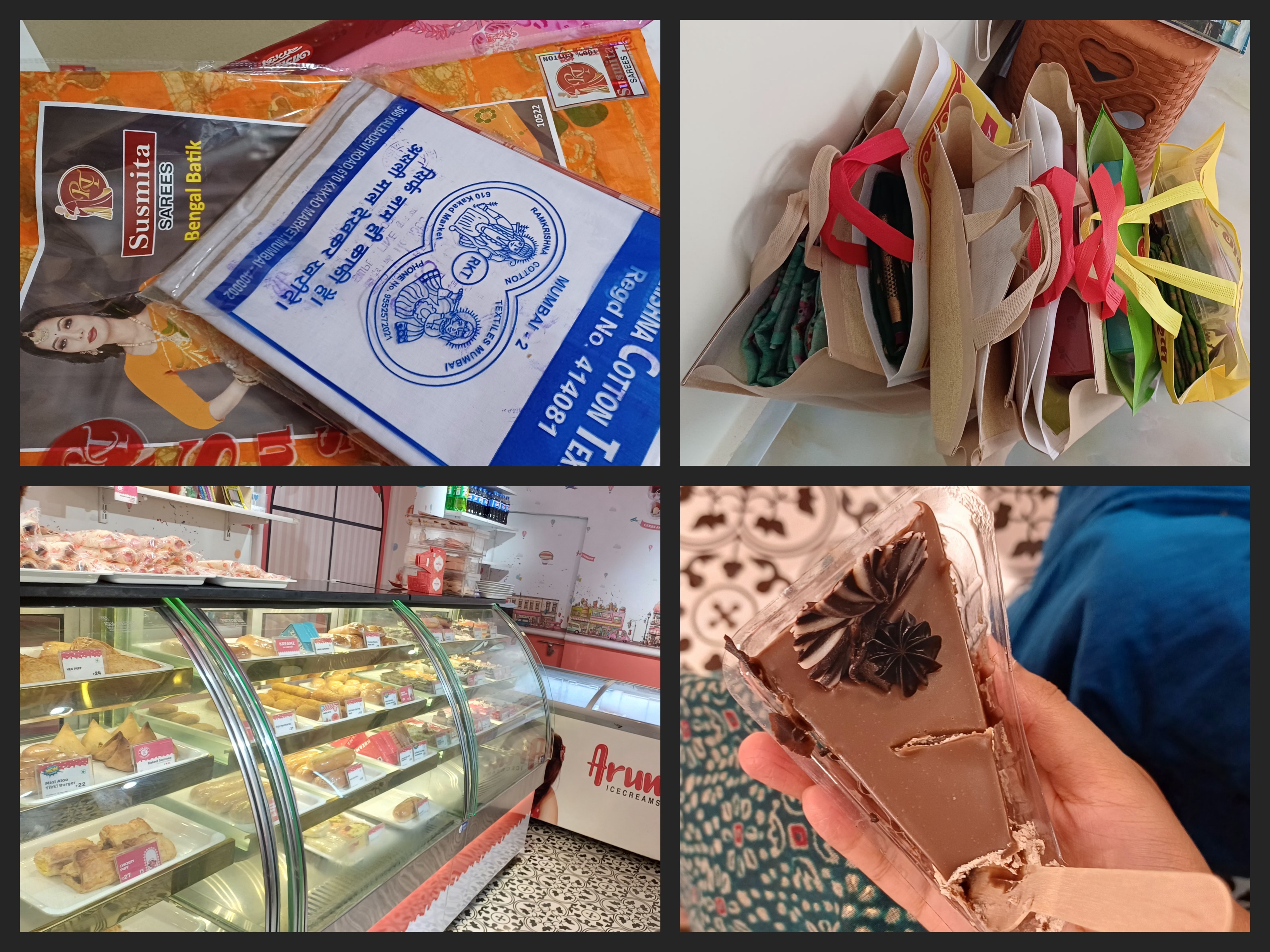 ওই দোকানে সমস্ত কাজ মিটিয়ে আমরা চলে গেলাম আর একটা দোকানে ,যেখান থেকে আমরা ধুতি কিনলাম। ওই যে বললাম মায়ের সাথে বেরোলে প্রচুর কাজ নিয়ে মা বার হয় বলে অনেক অনেক টাইম লাগে।। শপিং করতে করতে স্বাভাবিকভাবে খিদে পেয়ে যাবে, তাই ঢুকেছিলাম ক্রিমস এ। আমি আমার পছন্দমত একটা পেস্ট্রি খেলাম সেখান থেকে। মা আইসক্রিম খেলো।