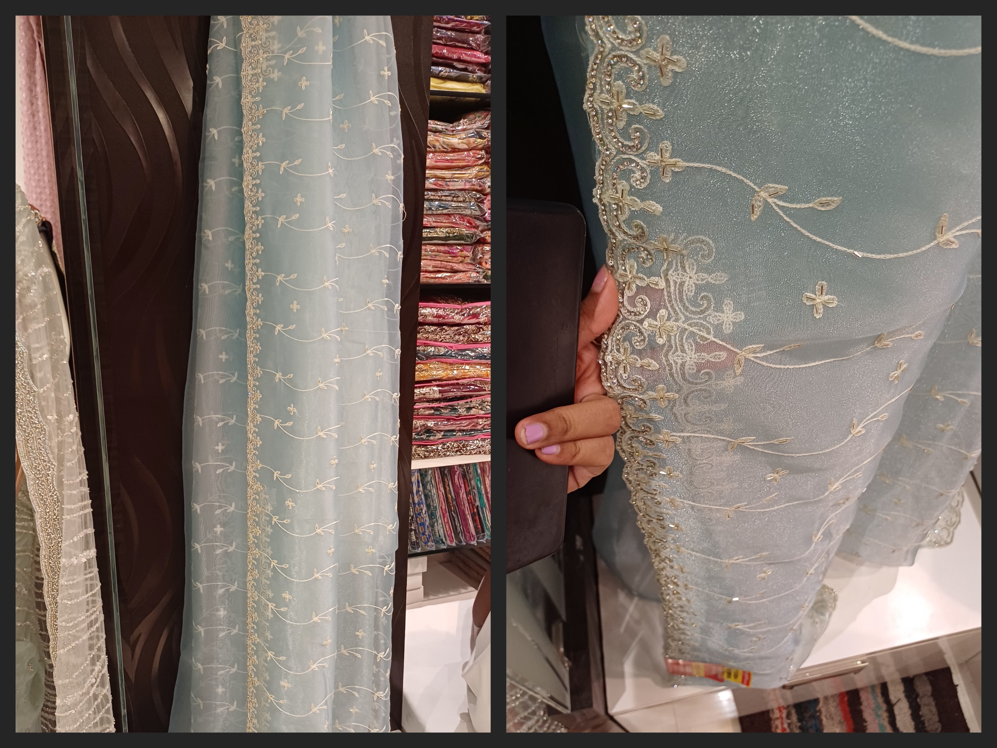 দোকানটার নিচের অংশটা গোটাটাই শাড়ির সেকশন বলা যেতে পারে ।আবার একদিকে মেয়েদের কিছু হালকা ডেলি ওয়ার কুর্তির কালেকশনও আছে। সেকেন্ড ফ্লোরটাও পুরোপুরি মেয়েদের আর একদম ওপরে ফ্লোরে রয়েছে বাচ্চাদের এবং ছেলেদের সেকশন। সেখান থেকেই ভাইয়ের জন্য কিনে নিয়েছিলাম শার্ট প্যান্ট ।