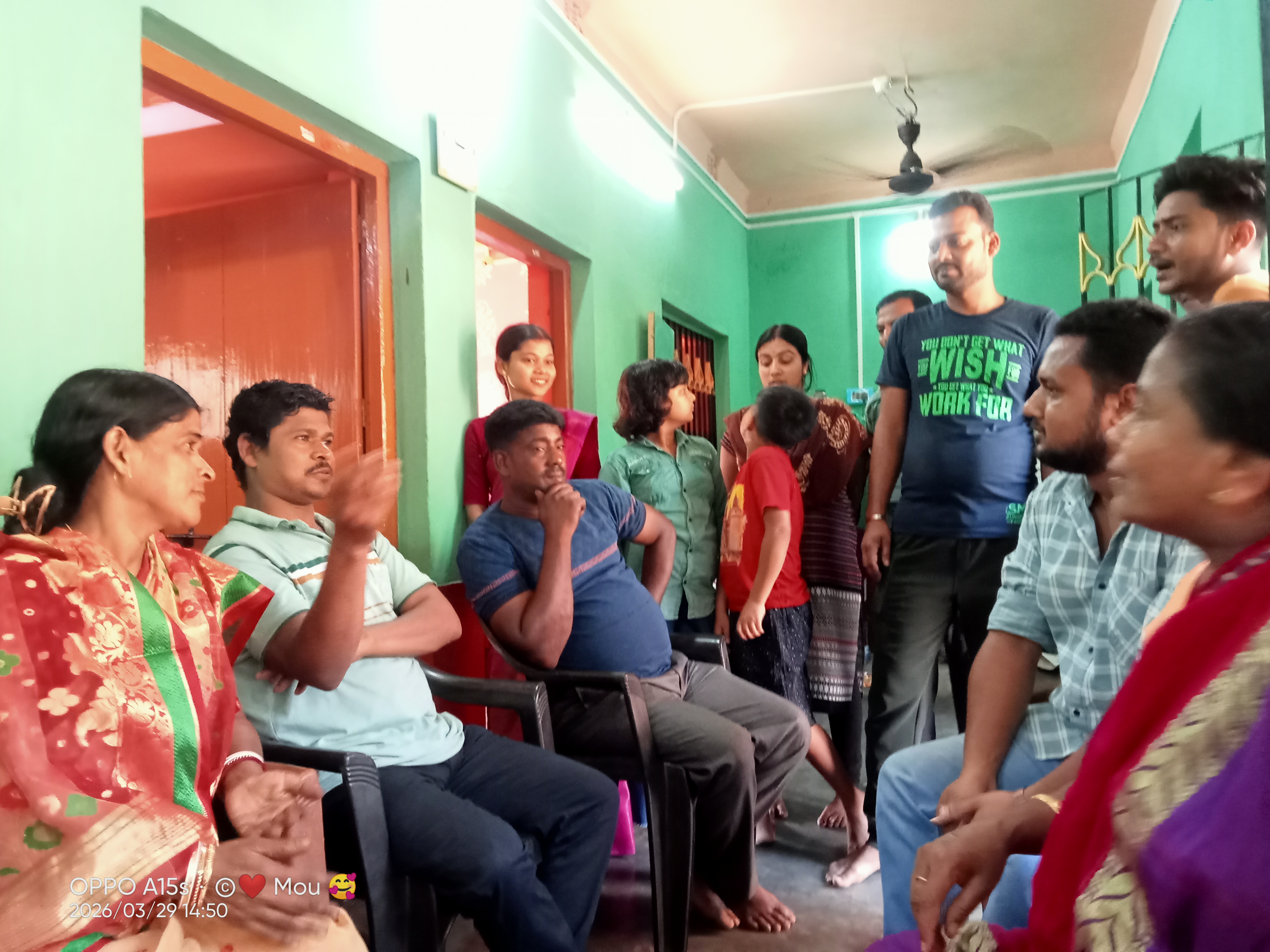 কথার কোন শেষ থাকে না । এরপর আবারো দুপুর সাড়ে তিনটা নাগাদ সকলকে দুপুরের খাবার খাওয়ার জন্য বসিয়ে দেওয়া হয়েছিল। আমরা যাব দেখে আমাদের জন্য প্রচুর আয়োজন করেছিল। দুপুরের খাবারে আমাদের দেওয়া হয়েছিল- ভাত ,শাক ভাজা, ডাল, পটল চিংড়ি ,খাসির মাংস, মাছ, চাটনি , পাঁপড়, দই, মিষ্টি। আমার তো মনে হচ্ছিল পুরো নেমন্তন্ন বাড়ি খাওয়ার মত মনে হচ্ছিল। সেদিন হয়তো কোন অনুষ্ঠানে আমরা যোগদান করেছি। এত আয়োজন করবে আমরা সেটাও বুঝে উঠতে পারিনি। আমরা তো আমাদের বাড়িতে যখন গিয়েছিলে তখন তেমন কিছু আয়োজন করে উঠতে পারিনি। তাই নিজেদেরই ভীষণ লজ্জা লাগছিল। যাইহোক সকলে মিলে খাবার-দাবার সেরে আবারো খানিকক্ষণ পর সকলে বসে এবার বাড়ি ফেরার জন্য সকলকে বলা হয়েছিল।