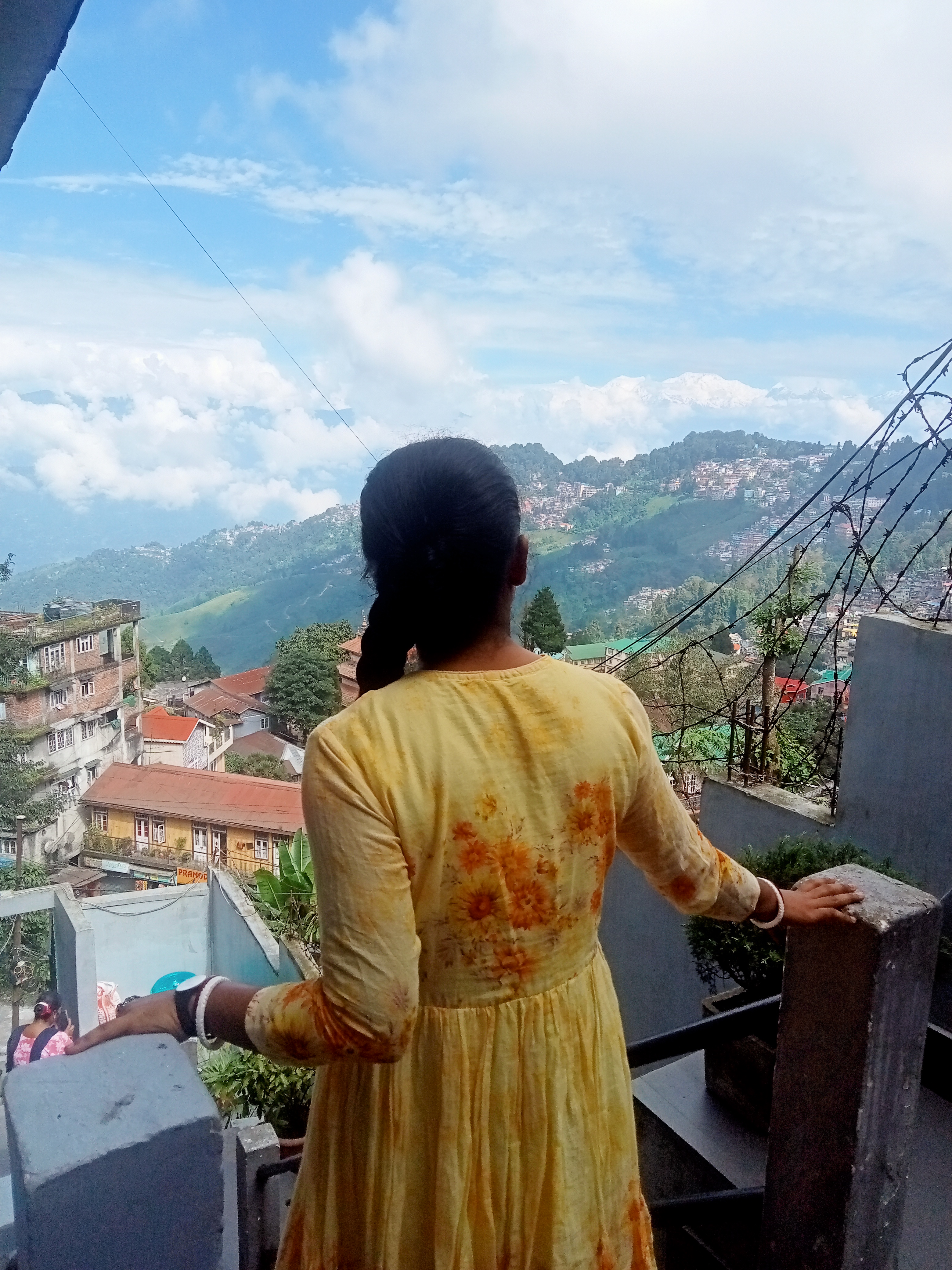 এরপর ভোরের আধো আধো অন্ধকার কেটে গেলেই যখনই হালকা রোদ উঠত তখন ওই সোনালী আলোয় ছটায় যেন চারিদিক ঝলমল করে উঠতো। চারিদিকে প্রকৃতি যেন আরো অন্যরকম হয়ে যেত ।তখন আরো সুন্দরভাবে আমরা প্রত্যেকদিন হোটেল থেকেই কাঞ্চনজঙ্ঘা সরাসরি দর্শন করতে পেরেছিলাম। শেষ দিন কে আমরা বাড়ি ফিরব সেদিন ভোরবেলাতেই কাকু ,কাকিমা, ভাই তিনজনে বেরিয়ে পড়ার পর আমি তো আমাদের হোটেলে ঘরে একাই ছিলাম। আমি বারবার বের হয়ে শুধু হোটেলের জানলা দিয়ে বাইরের দৃশ্য অনুভব করেছিলাম। কারণ সেই দিন ছিল আমাদের শেষ দিন ।আবার যেতে পারবো কি পারবো না তাই প্রচন্ড মন খারাপ করছিল ।আর আমি বারবার হোটেলে জানলা দিয়ে কাঞ্চনজঙ্ঘা দর্শন করছিলাম। কারণ এই দৃশ্য আর তো দেখবে পারব না।যাইহোক দার্জিলিঙে বেড়াতে গিয়ে সমস্ত জায়গায় তে আমরা ভীষণ আনন্দ মজা করে কাটিয়েছিলাম। কিছু কিছু মুহূর্ত আপনাদের মাঝে শেয়ার করে নিচ্ছি। আশা করি আপনাদেরও ভালো লাগছে। ফোনের ক্যামেরা ভালো না তাই দৃশ্য গুলো খুব ভালো বোঝা যাচ্ছে না।