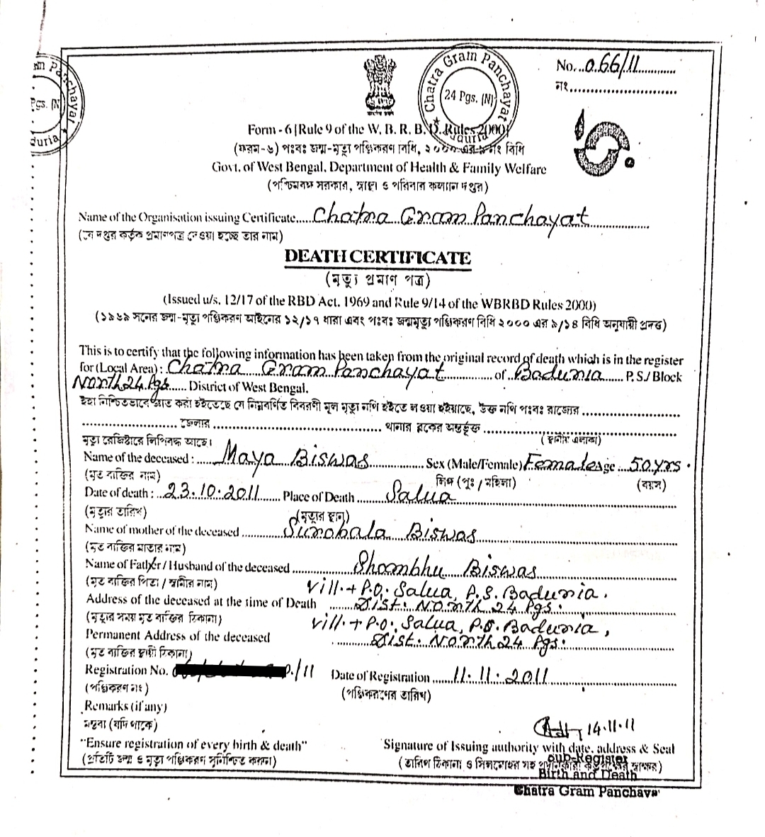 সেখানে জেনারেল ডায়েরি করার পর সেই অফিসার একটা লিখিত কাগজ দিয়েছেন, যেটা নিয়ে পরবর্তীতে আমাদের গ্রাম পঞ্চায়েতে গেলে মায়ের ডেট সার্টিফিকেট নতুন করে পাওয়া যাবে। তবে আমার বার্থ সার্টিফিকেটের জন্য আরও অনেক কিছু করতে হবে।