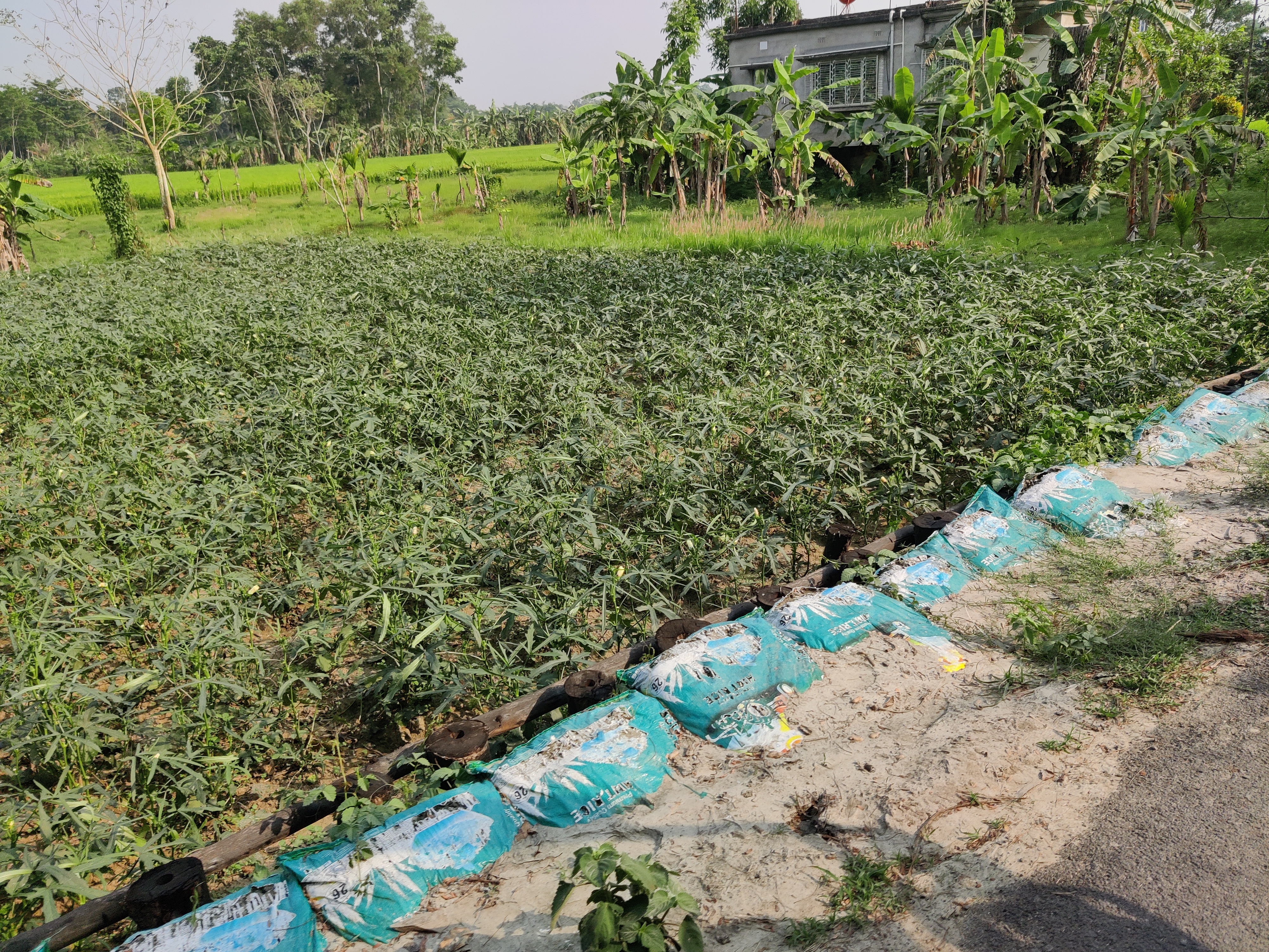 সেখানে যাওয়ার জন্য মাঠের ভেতরের রাস্তা ধরেছিলাম আমরা। যার দুপাশে শুধু সবুজ রং চোখে পড়েছিলো। একদিকে ধান ক্ষেত, একদিকে ঢেঁড়স গাছ। এছাড়াও আমবাগান, রাস্তার পাশের ঝোঁপ জঙ্গল সবকিছু পেরিয়ে তারপর পৌঁছেছিলাম দাদাদের বাড়ি।