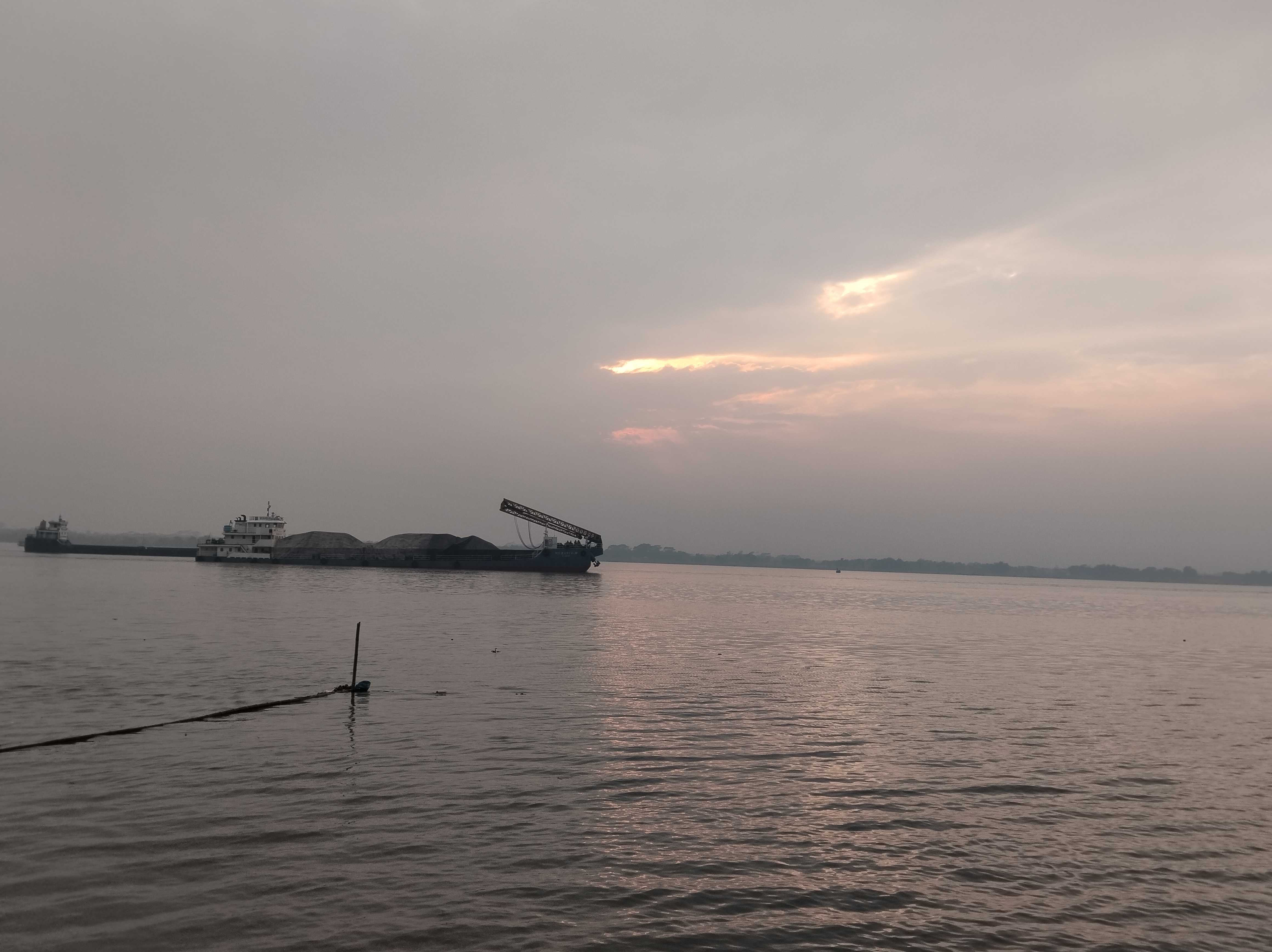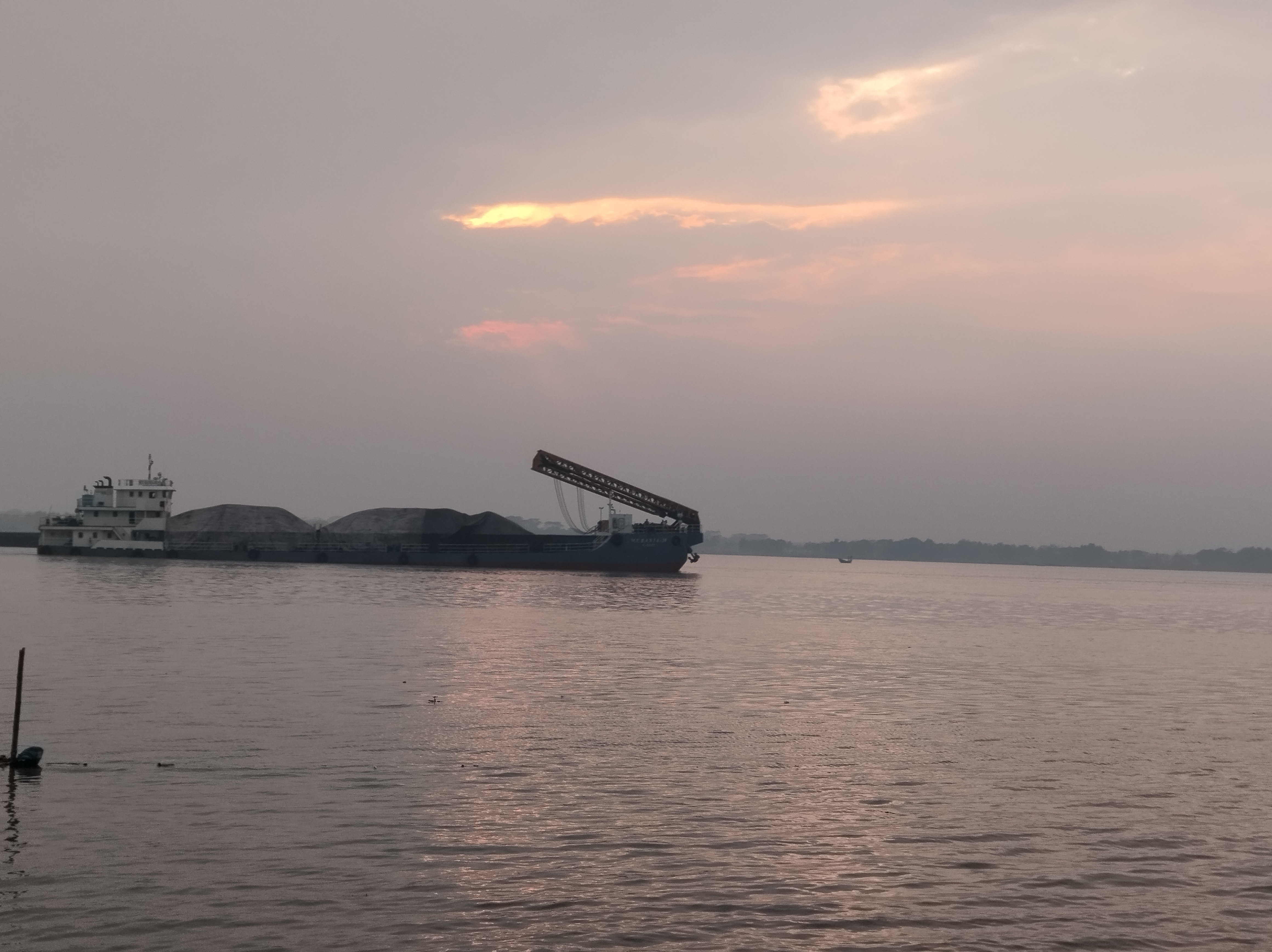 তবে এই মুহুর্তে কেউ নাই, সবাই হয়ত নিজের কাজে ব্যস্ত। নদীর বুক চিরে একের পর এক মালবাহী জাহাজ ছুটে চলেছে কখনও বা নদীর স্রোতের সাথে আবার কখনও বিপরীতে।