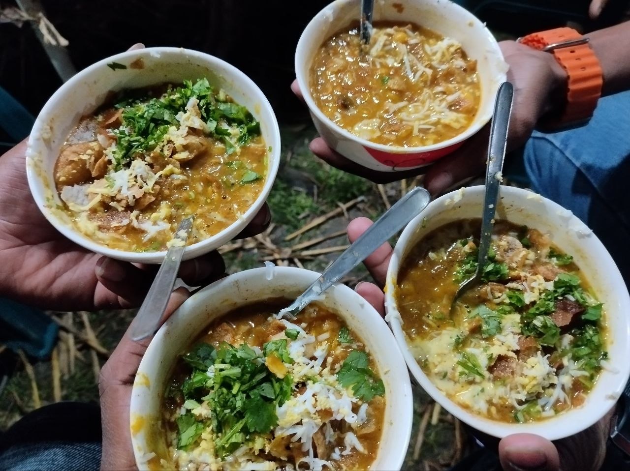 কিছু সময় পর আমরা বাজারে চলে যাই। চটপটির দোকান থেকে সুন্দর ঘ্রাণ আসছিলো। মানুষের বরাবরের স্বভাব, সুন্দর কিছুর আভাস পেলে সেদিকে এগিয়ে যাওয়া। আমরা ব্যতিক্রম নই তাই চটপটির দোকানে এগিয়ে যাই। চারজনের জন্য চটপটি অর্ডার করি।