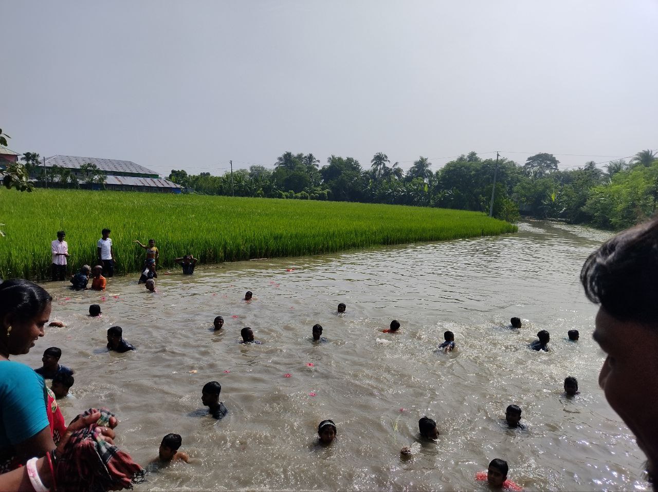 নদী থেকে আমরা খানিক দুরে থাকায় জোয়ারের জল আসতে একটু দেরি হয় তাই স্নানও দেরিতে শুরু হয়।