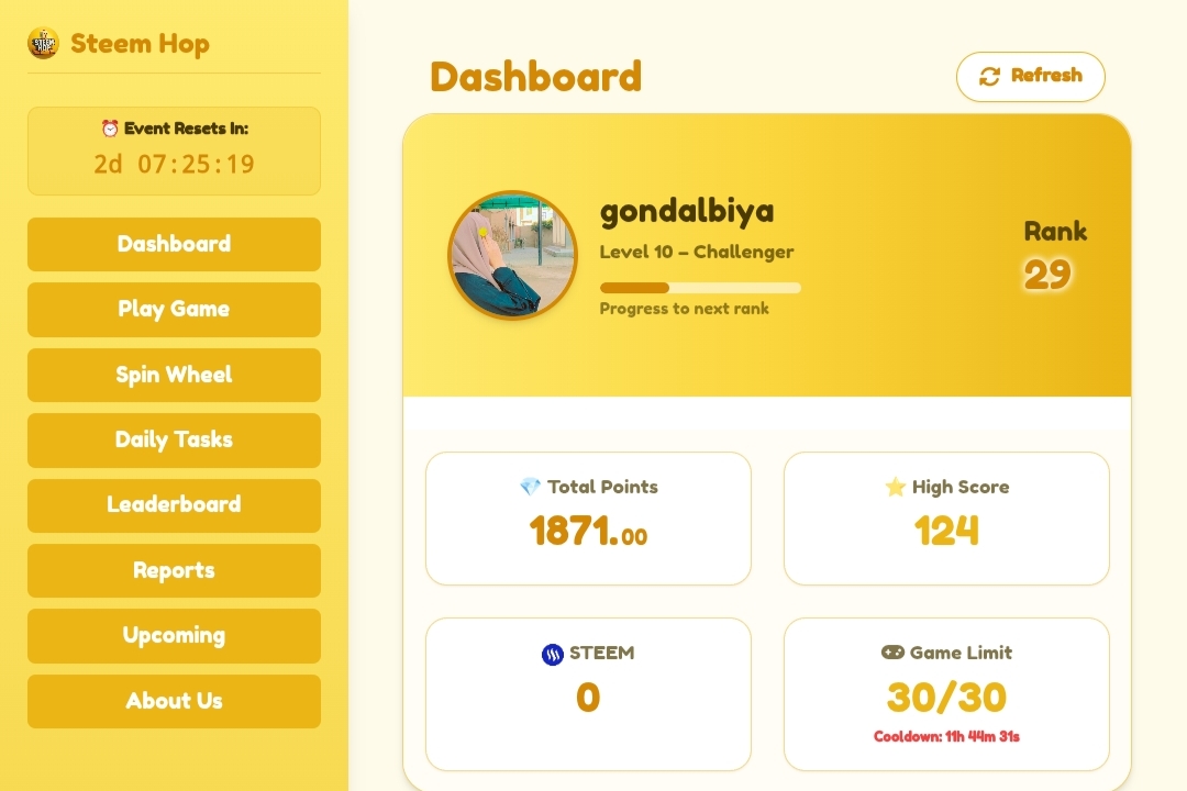| gondalbiya [Posts] 12:57:15 am Having Fun in Every Step: My SteemHop Journey 🎮💥 |