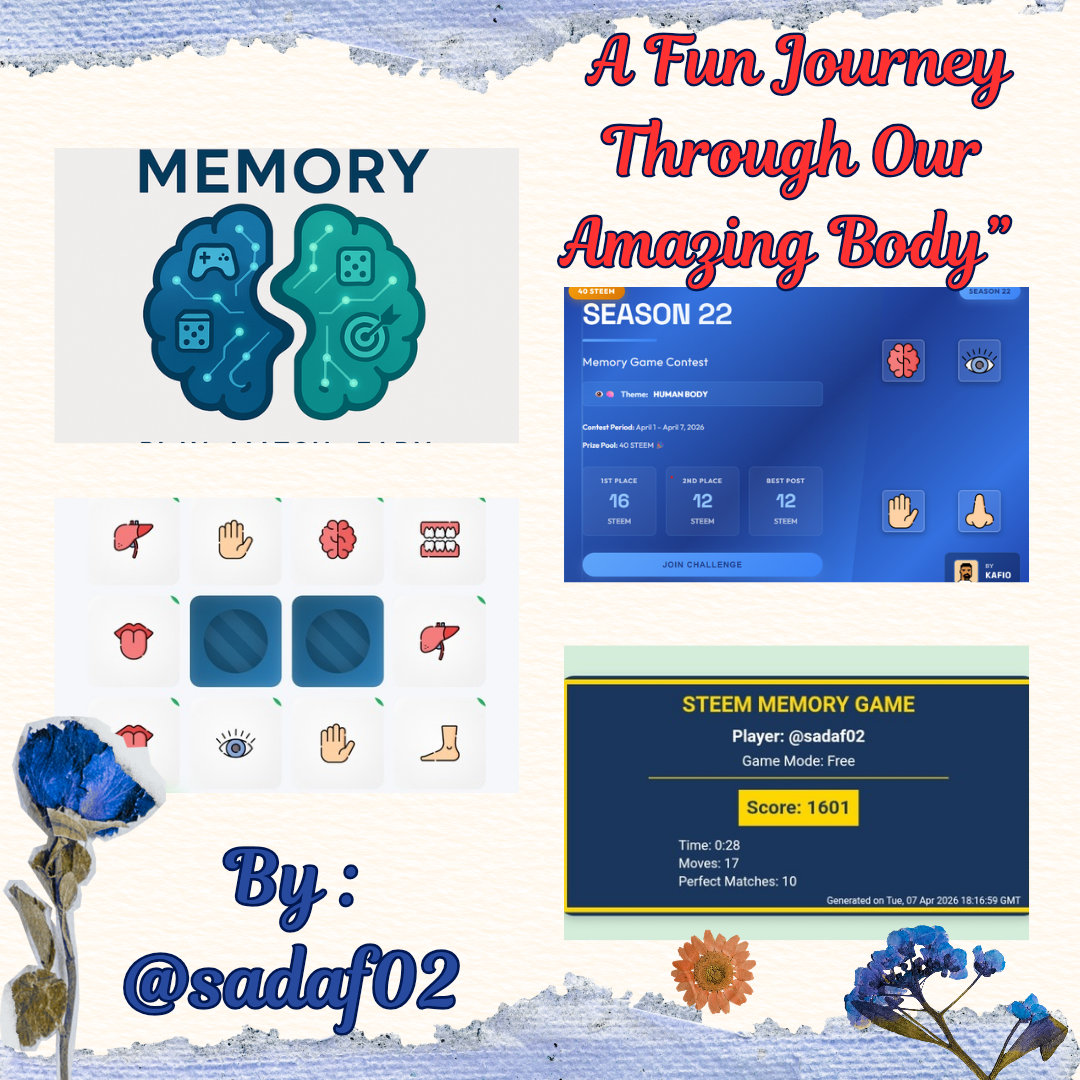 | sadaf02 [Posts] 12:25:24 am “Steem Memory Game: A Fun Journey Through Our Amazing Body” |
