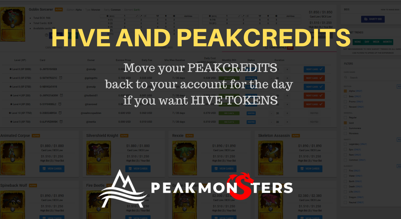 Announcement about Hive, Splinterlands and PeakCredits