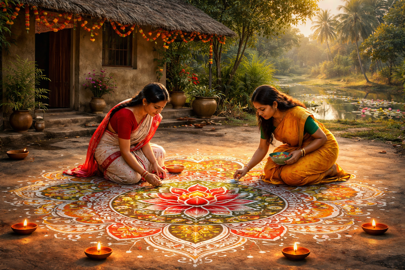 বাংলার ঘরোয়া সংস্কৃতি ও লোকশিল্পের কথা বললে যে শিল্পটি সবচেয়ে আগে মনে পড়ে, তা হলো আলপনা। মাটির ঘর থেকে শুরু করে আধুনিক ফ্ল্যাট—উৎসব, পূজা বা শুভ কাজে আজও আলপনার উপস্থিতি বাংলার ঐতিহ্যকে জীবন্ত করে তোলে। আলপনা আসলে বহু প্রাচীন সময় থেকেই হয়ে আসছে। বলা যায় একটা প্রাচীন রীতি। কথিত আছে, এটা সর্বপ্রথম গ্রামীণ নারীদের হাত ধরেই বিকশিত হয়েছে। তখন অর্থাৎ প্রাচীন আমলের দিকে মাটির ঘরে গোবর এবং চালের গুঁড়ো দিয়ে আঁকা হতো প্রথম আলপনা। গ্রামের দিকেই উৎসবের সময়ে বেশিই দেখা যায়। আজকের দিনে যদিও রং, ব্রাশ ও অ্যাক্রেলিক ব্যবহার হয়ে থাকে। কিন্তু আসলে আঙুলের টানে আঁকা আলপনার আলাদাই একটা আকর্ষণীয় ব্যাপার আছে।