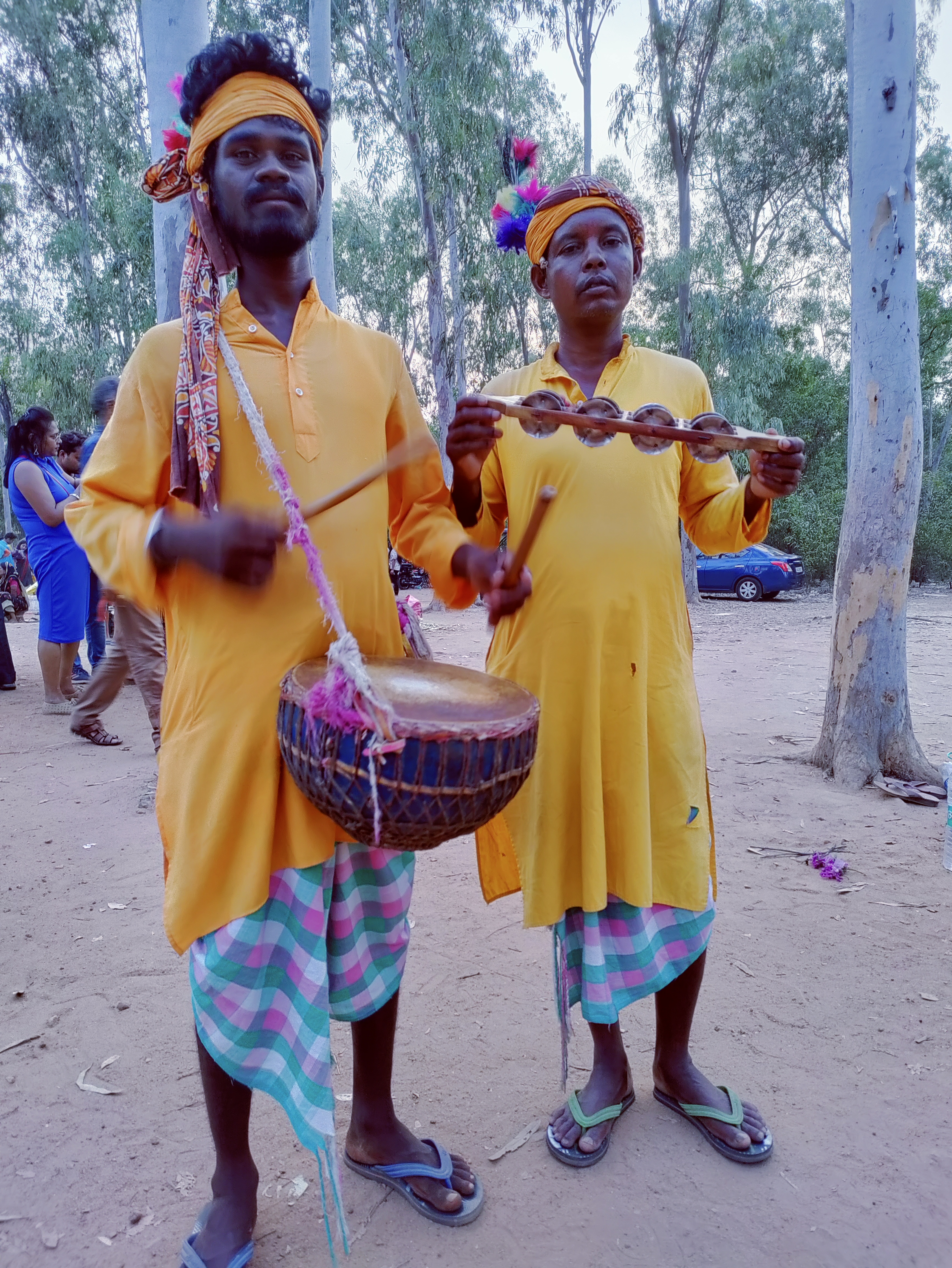 সোনাঝুরির হাটে দুই সাঁওতালী বাজনদারের ফটো