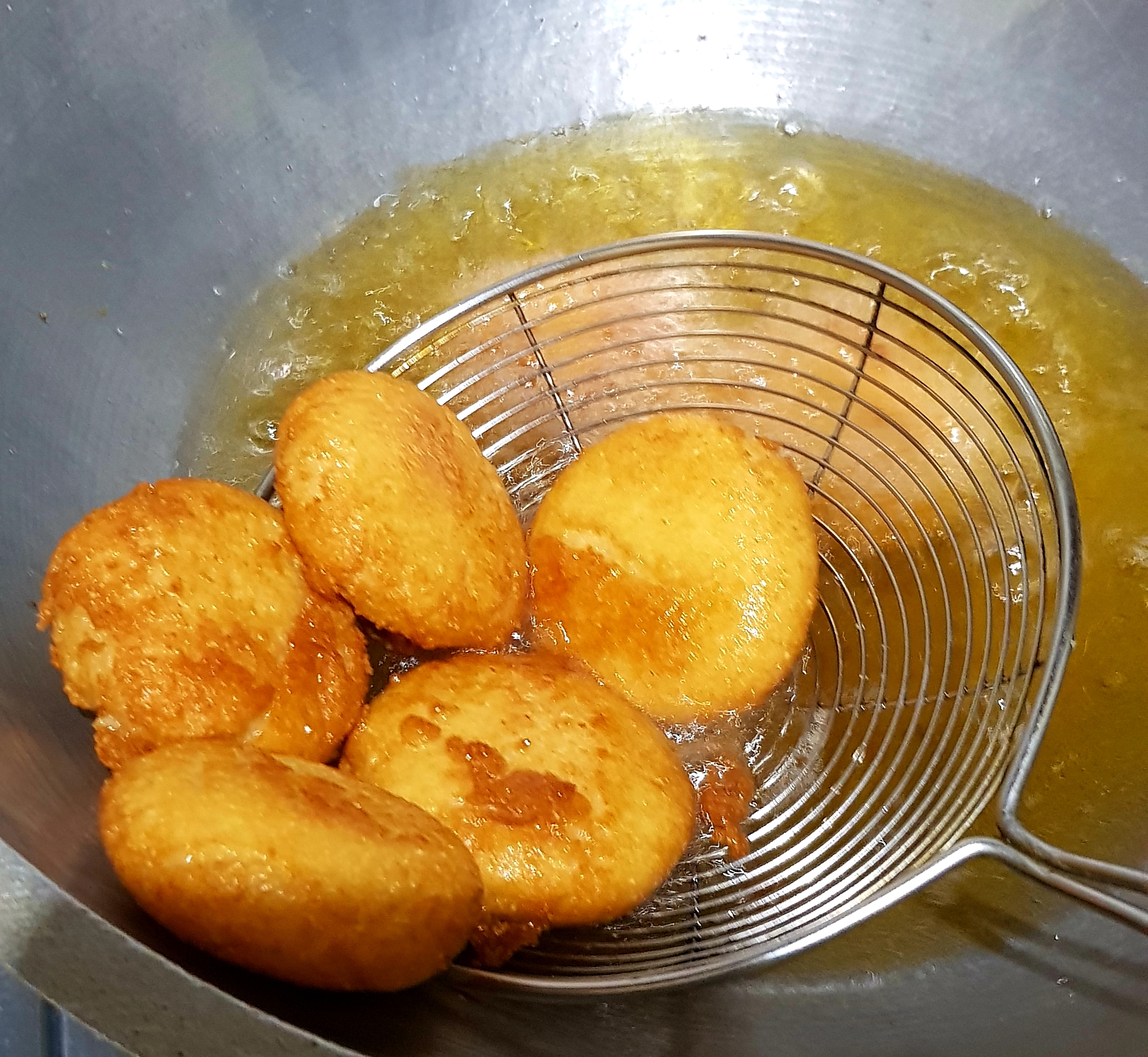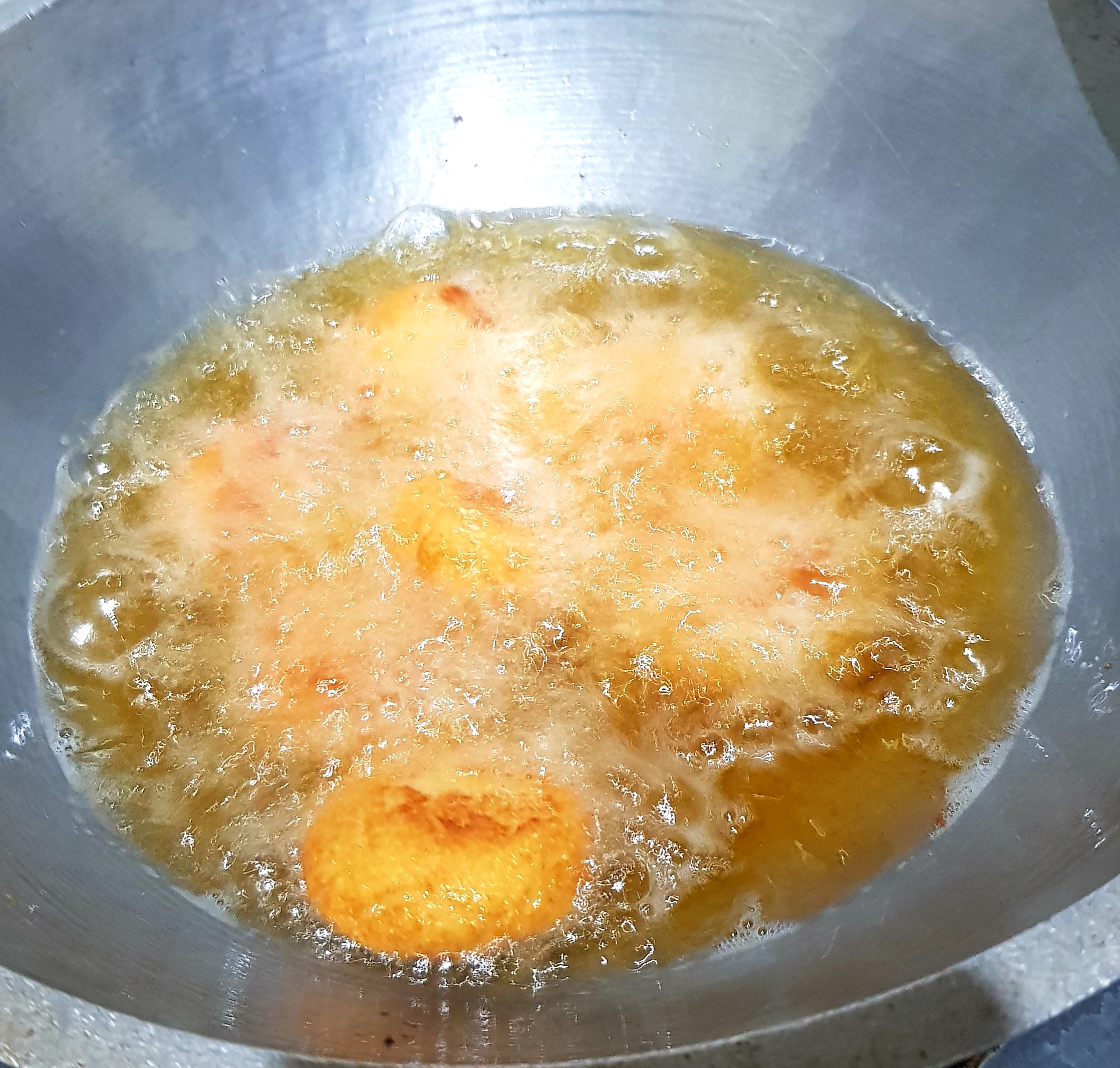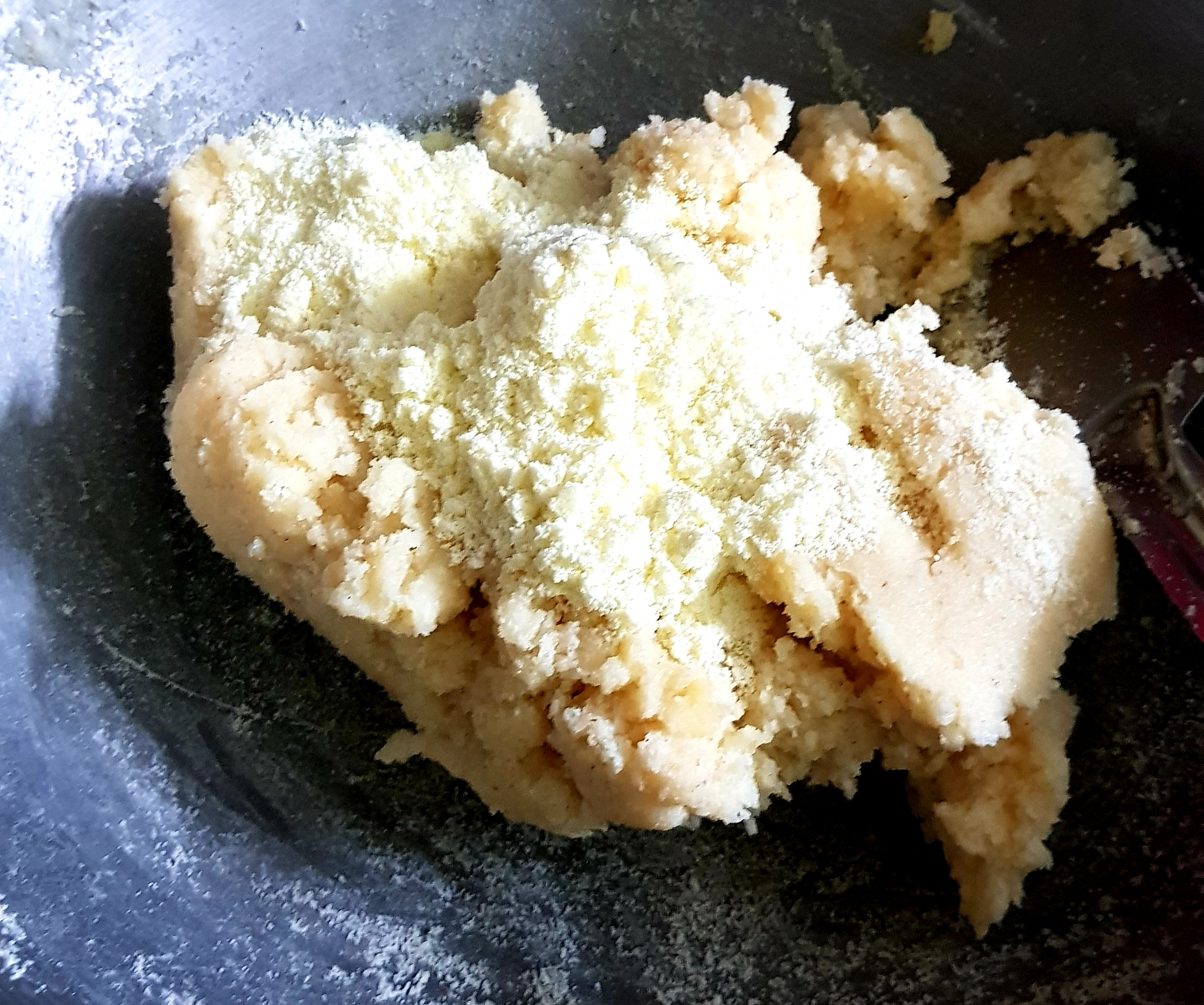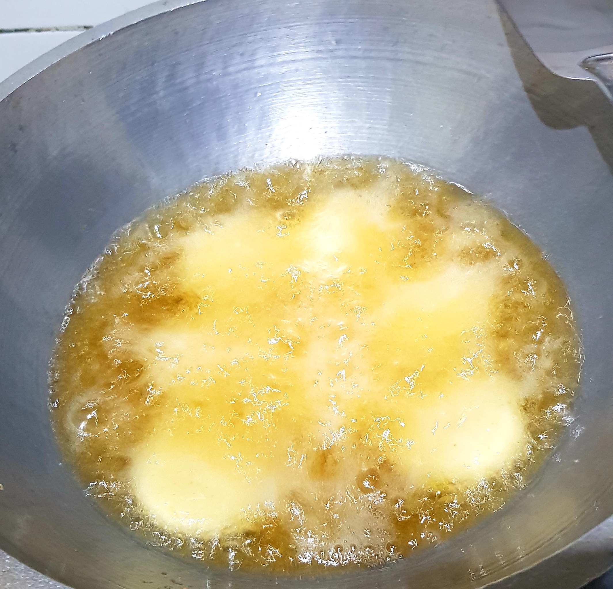 সুজিটা চুলা থেকে নামিয়ে নেওয়ার পরে তার ভিতরে ৪ টেবিল চামচ পরিমাণ গুড়া দুধ দিয়ে দিয়েছি। গুড়া দুধ দিয়ে হাত দিয়ে সুজি টাকে ভালো মত মোথে নিয়েছি। তারপর একটু একটু করে নিয়ে গোল গোল করে বড়ার মত বানিয়ে নিয়েছি। তারপর অন্য একটি চুলায় কড়াই বসিয়ে তার ভেতরে পর্যাপ্ত পরিমাণে তেল দিয়ে দিয়েছি। |