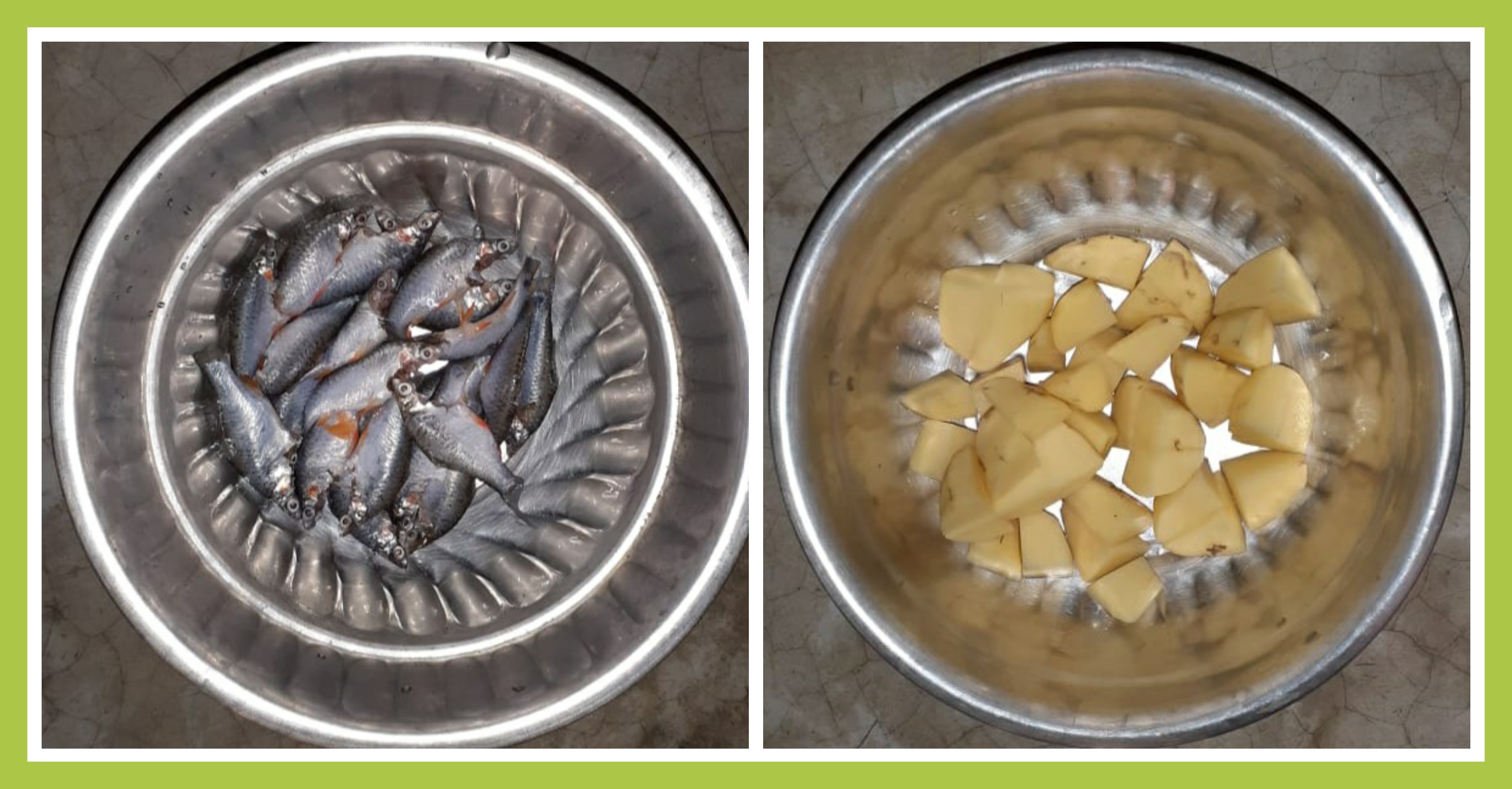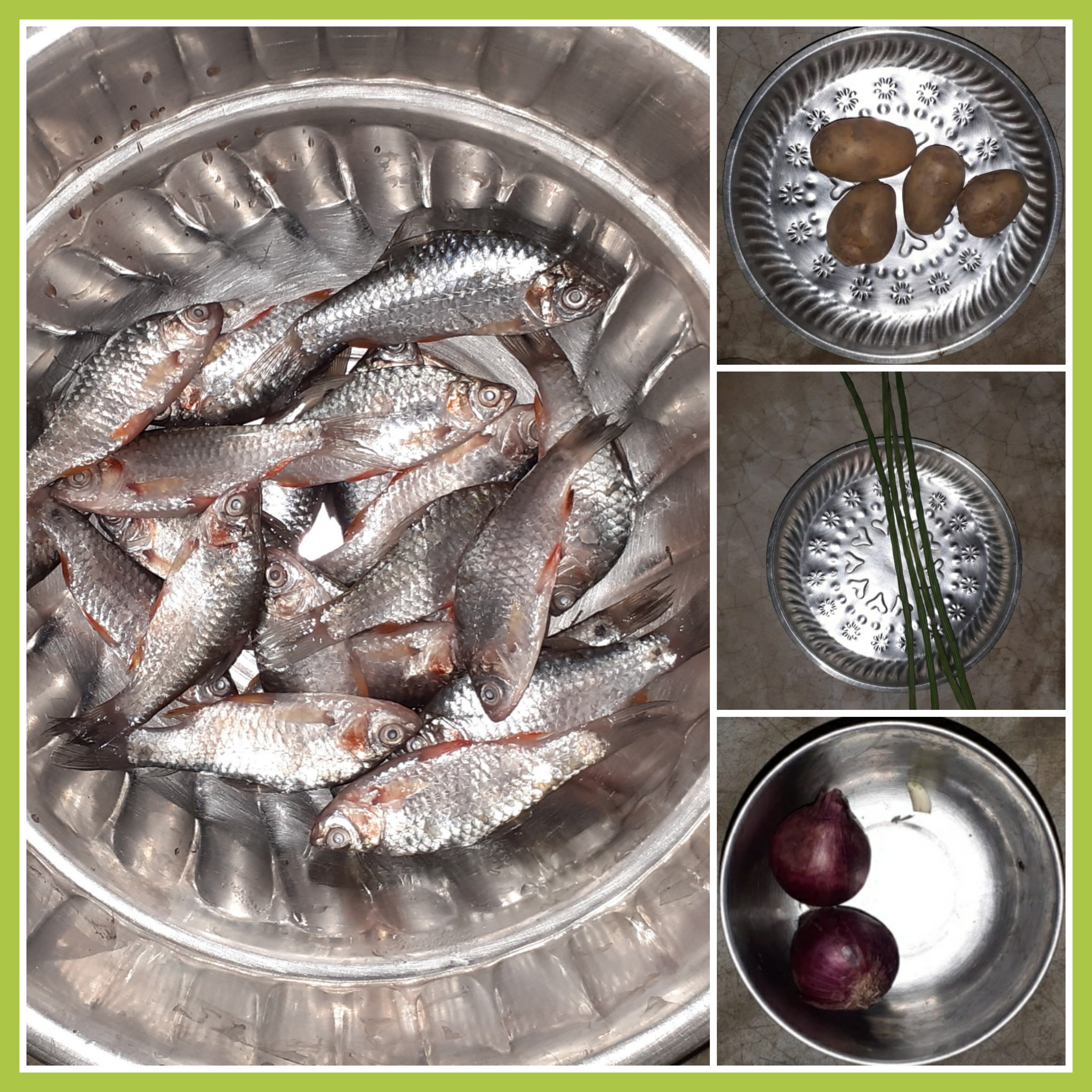 ❖সব পুঁটি মাছগুলোকে প্রথমে ভালো করে কেটে নিতে হবে ( বাজার থেকে একেবারে কাটিয়ে এনেছিলাম ) এবং পরে আমি বাড়িতে এনে জল দিয়ে ধুয়ে পরিষ্কার করে নিয়েছিলাম। এরপর আলুর খোসা ছালিয়ে কেটে পিচ করে নিয়েছিলাম।
