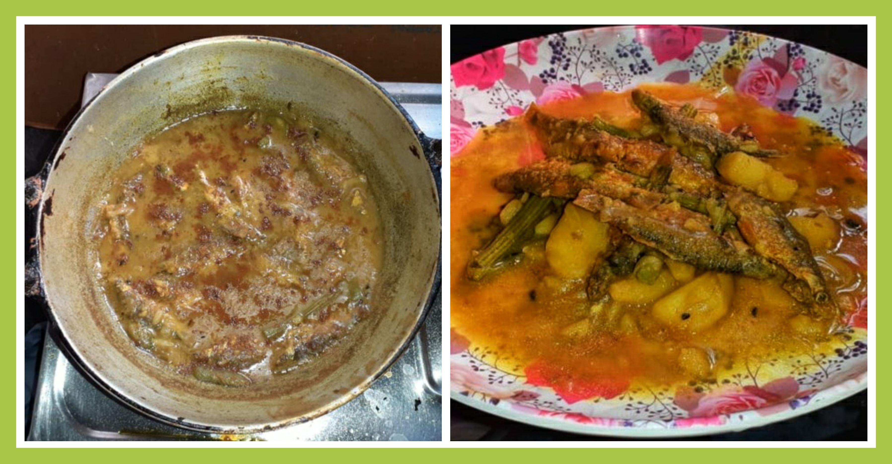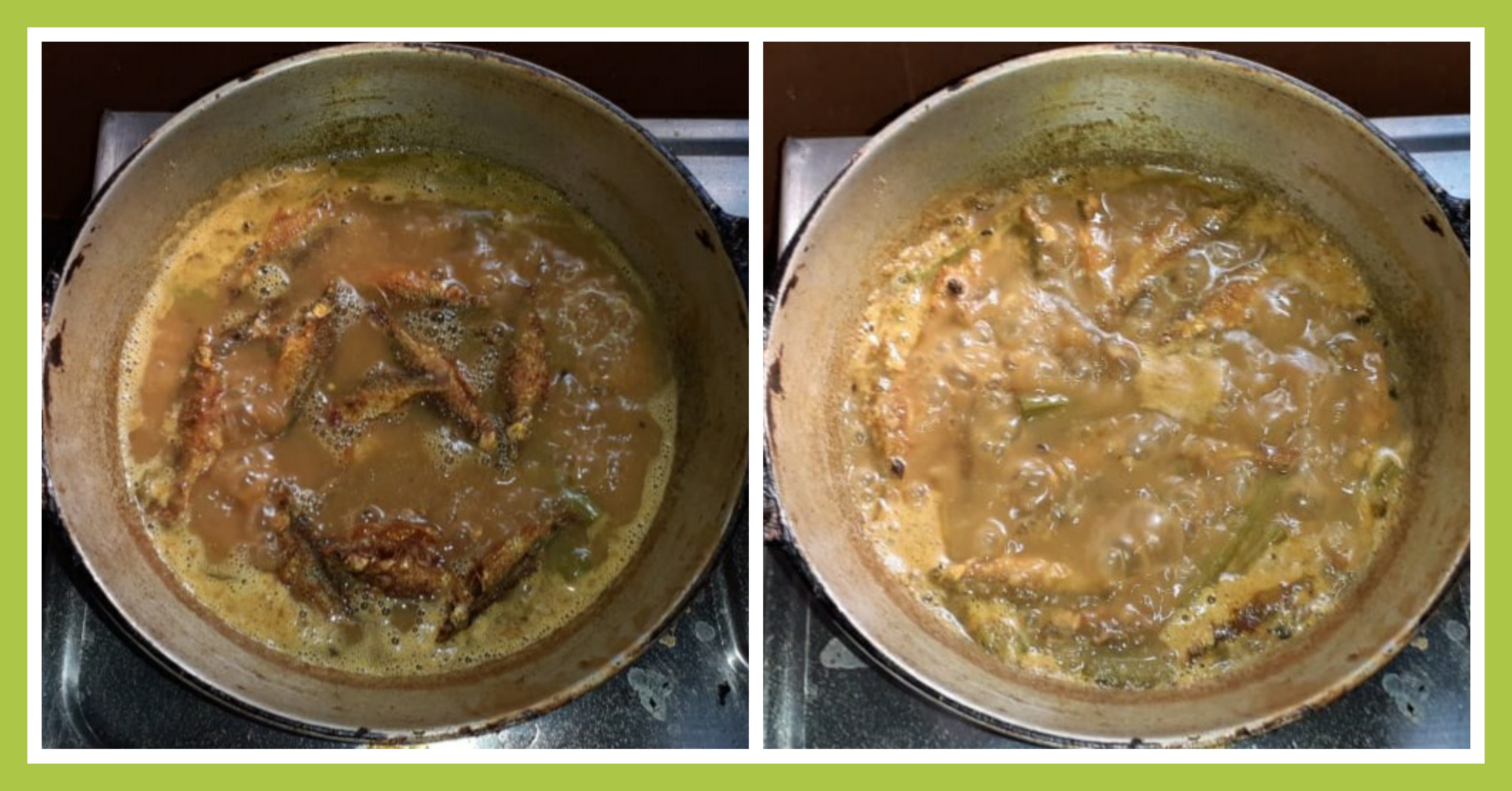 ❖তরকারি কিছুক্ষন জ্বাল দেওয়ার পরে তাতে ভাজা পুঁটি মাছগুলো দিয়ে দিয়েছিলাম। এরপর তরকারি শেষ পর্যন্ত না হয়ে আশা পর্যন্ত দেরি করেছিলাম।