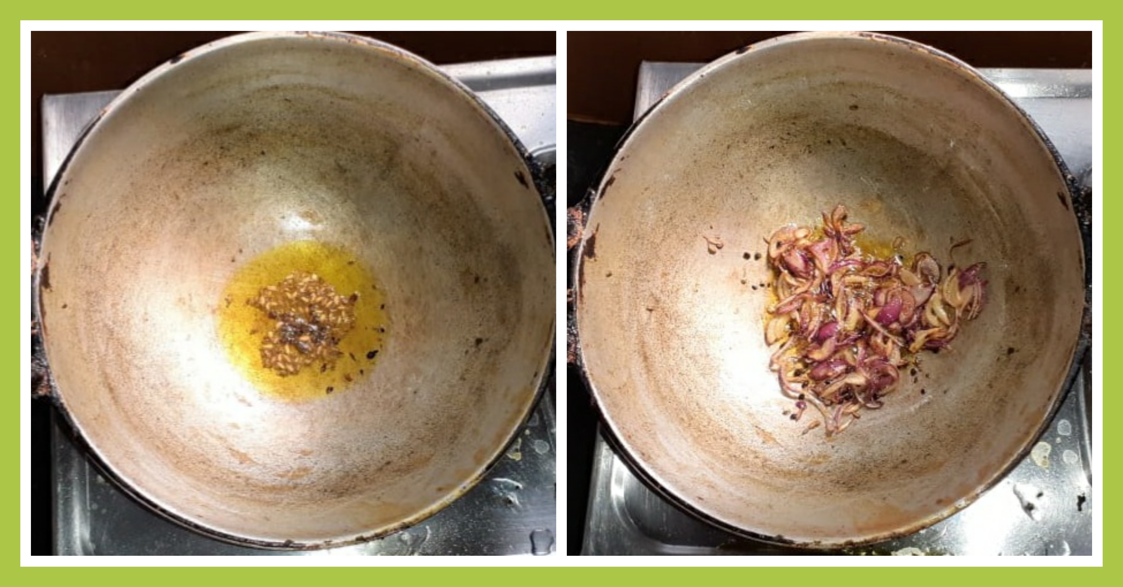 ❖কড়াইতে তেল দিয়ে দেওয়ার পরে জিরা দিয়ে দিয়েছিলাম। এরপর তাতে পেঁয়াজ কুচি দিয়ে ভাজা মতো করে নিয়েছিলাম।