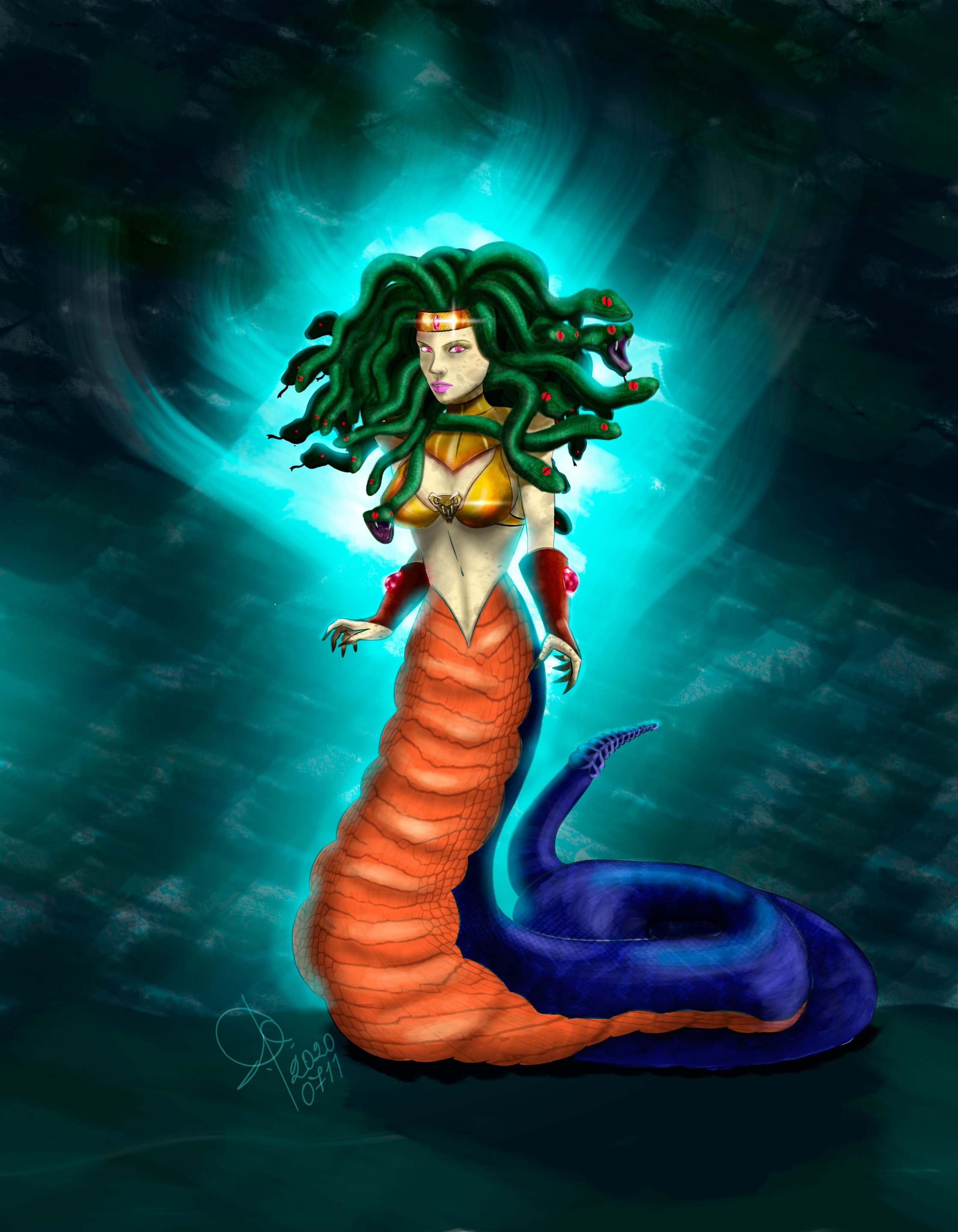 Saludos compañeros, para esta semama #92 del concurso de arte de @splinterlands / @steemmonsters he dibujado, después de casi 5 semanas de abandono, al personaje del elemento agua, Medusa.