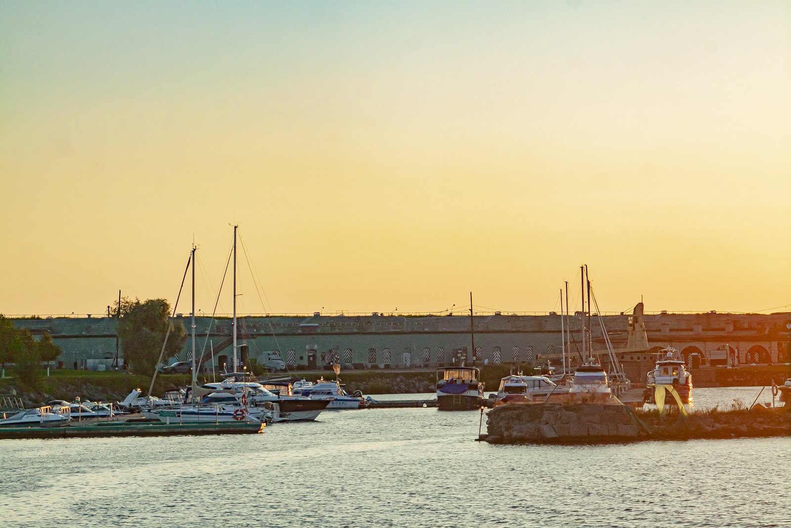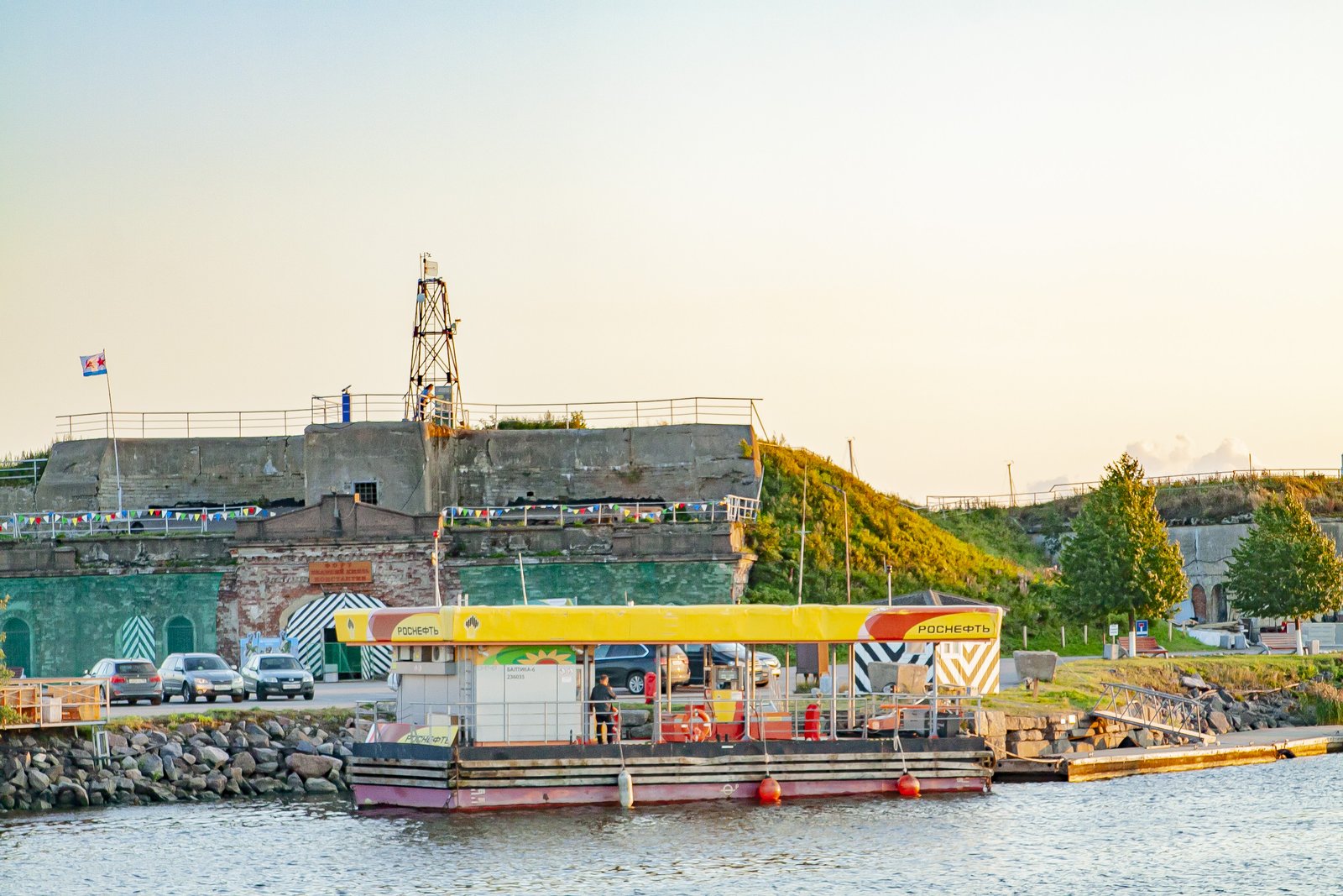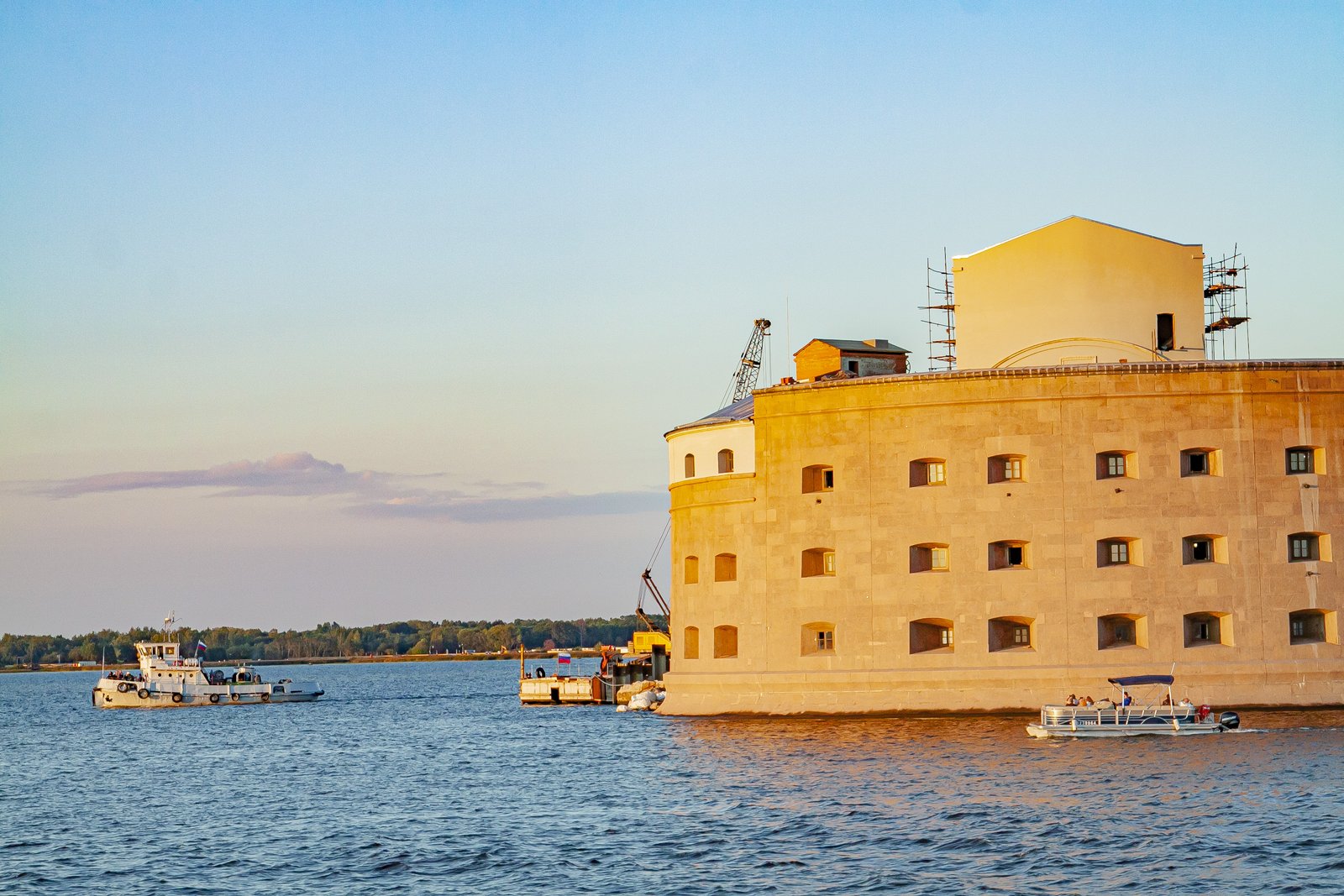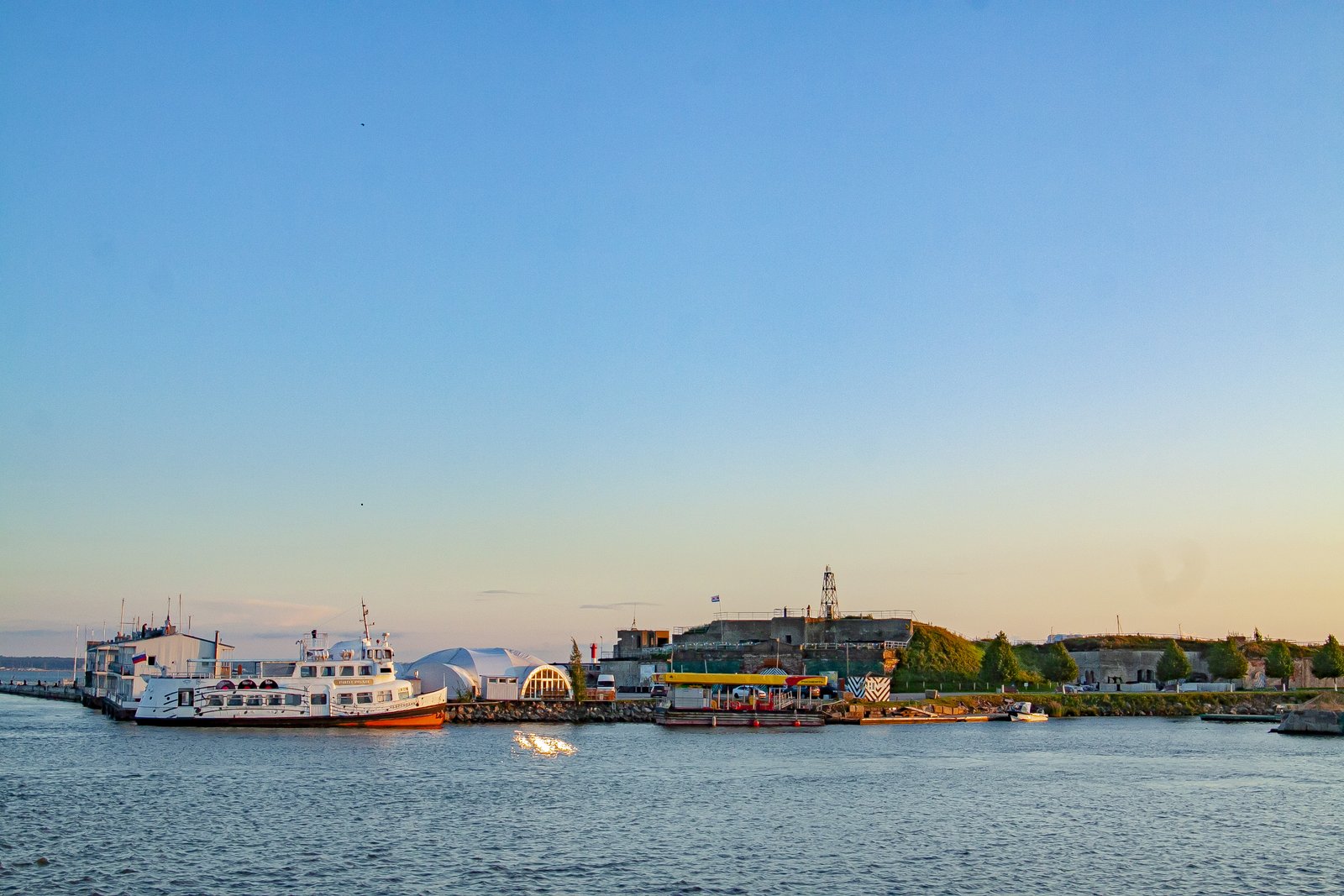 While we were sitting on the deck of a large pleasure boat, gazing at the surface of the sea and the forts, the day imperceptibly came to an end. In the rays of the setting sun, the walls of the sea fortifications looked golden. The lack of sea motion practically did not create the feeling that we were actually taking a boat trip.