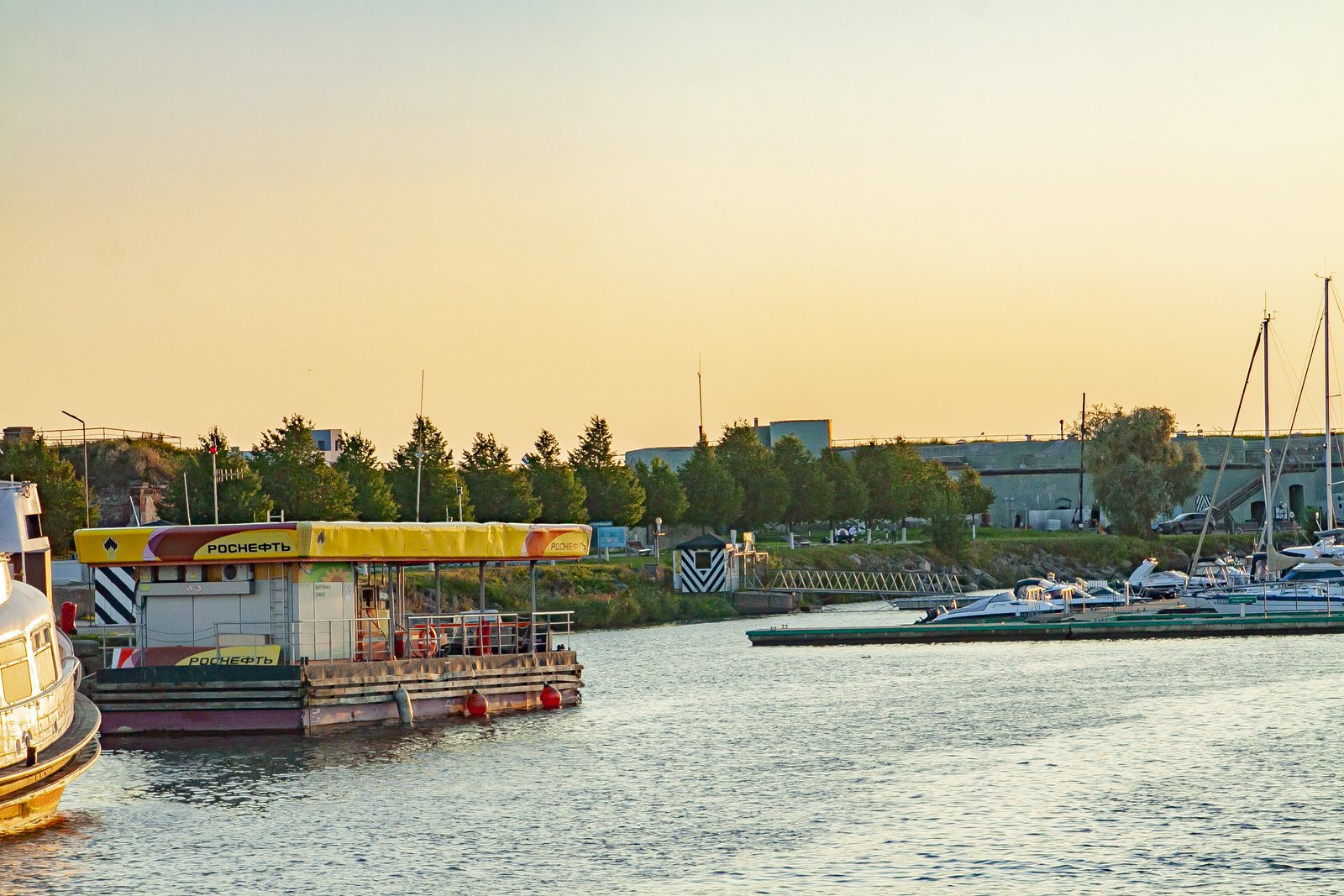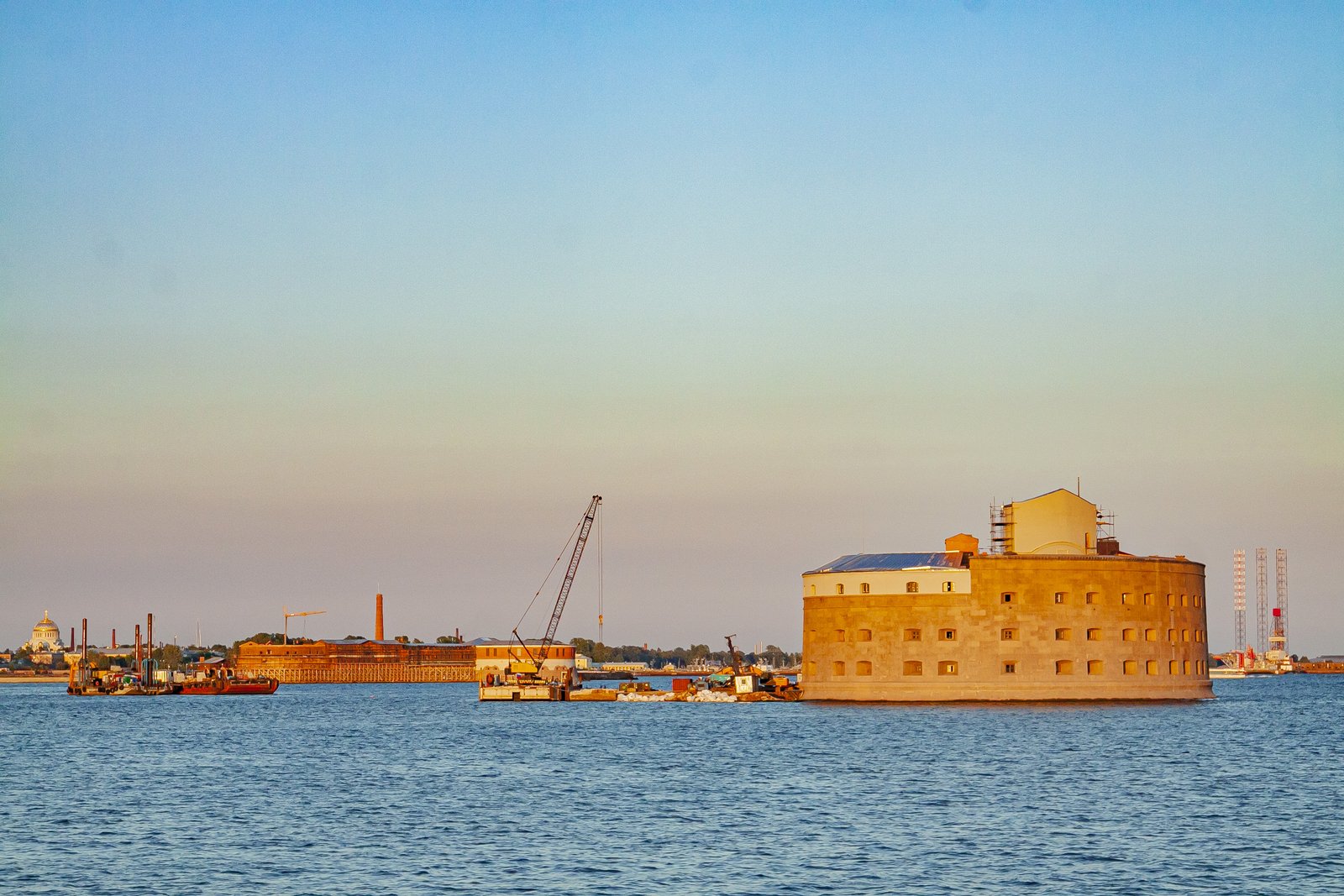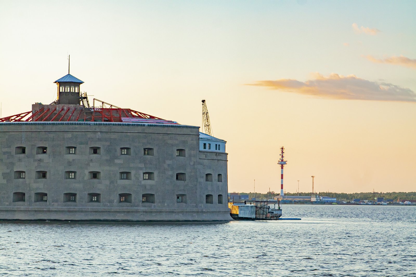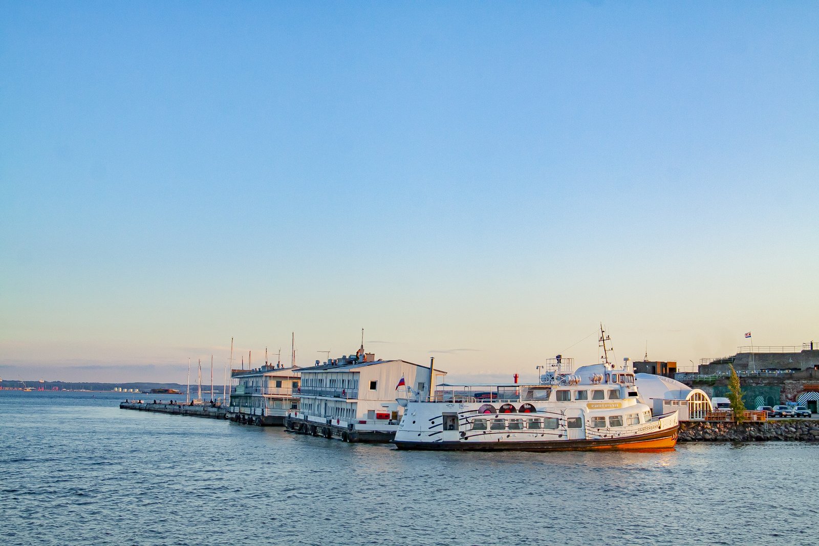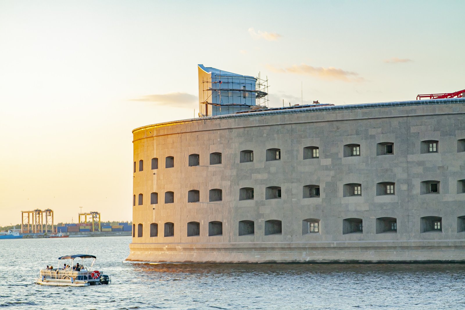While we were sitting on the deck of a large pleasure boat, gazing at the surface of the sea and the forts, the day imperceptibly came to an end. In the rays of the setting sun, the walls of the sea fortifications looked golden. The lack of sea motion practically did not create the feeling that we were actually taking a boat trip.