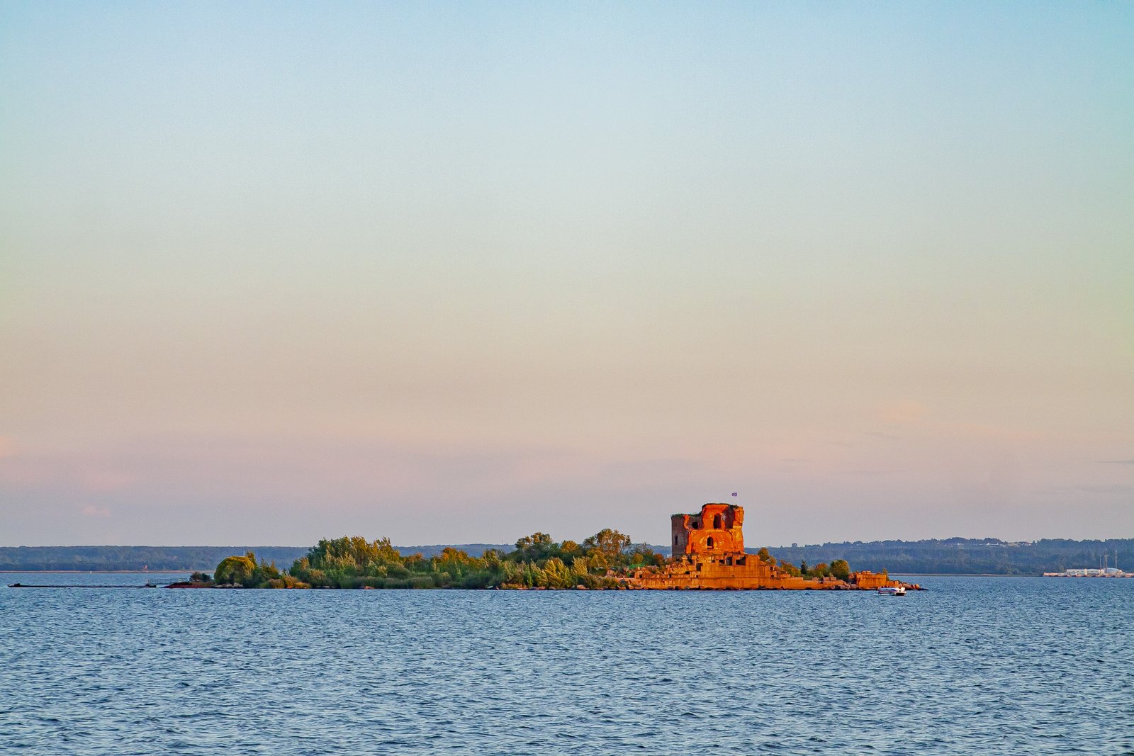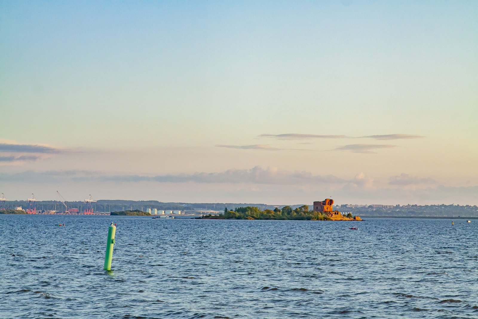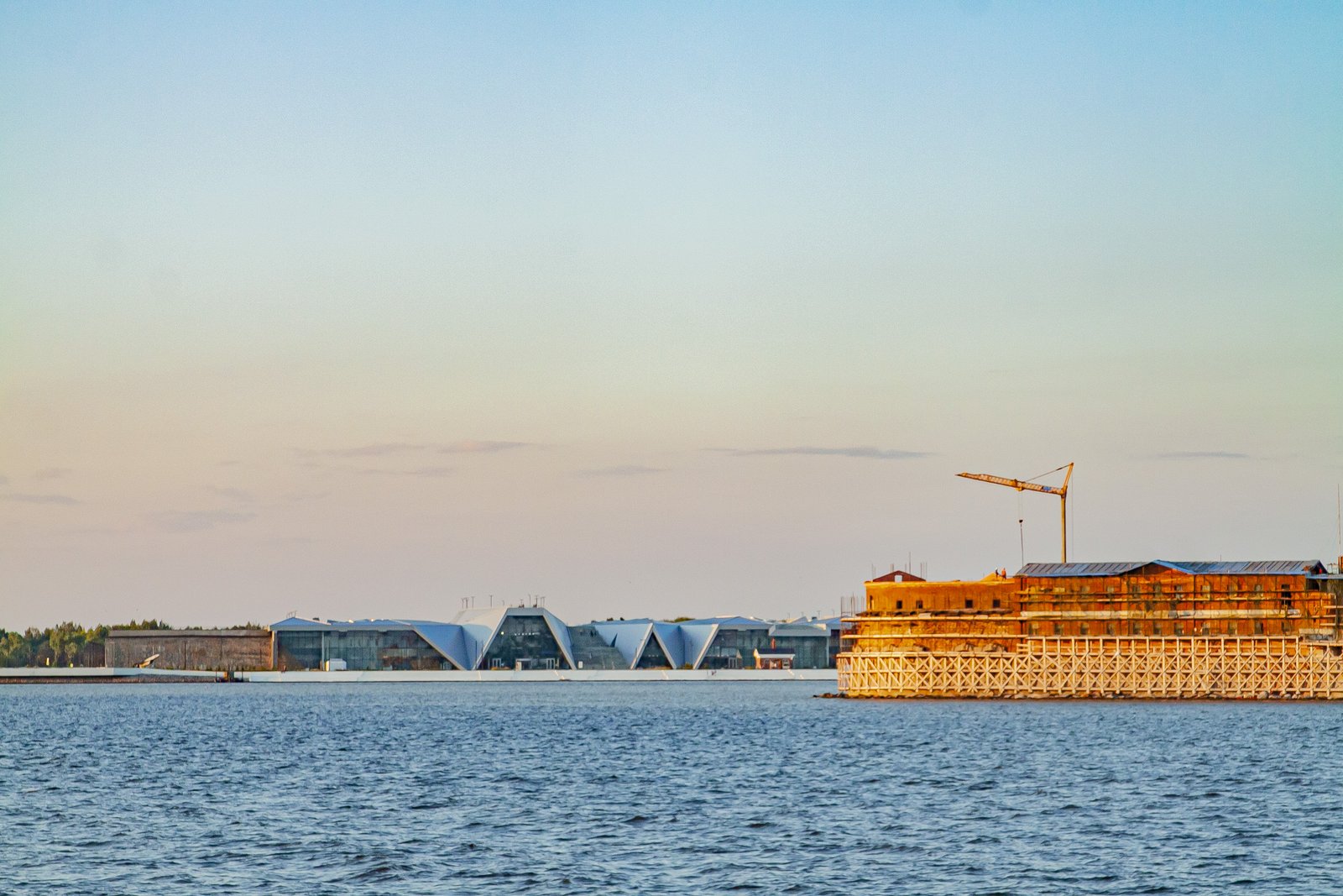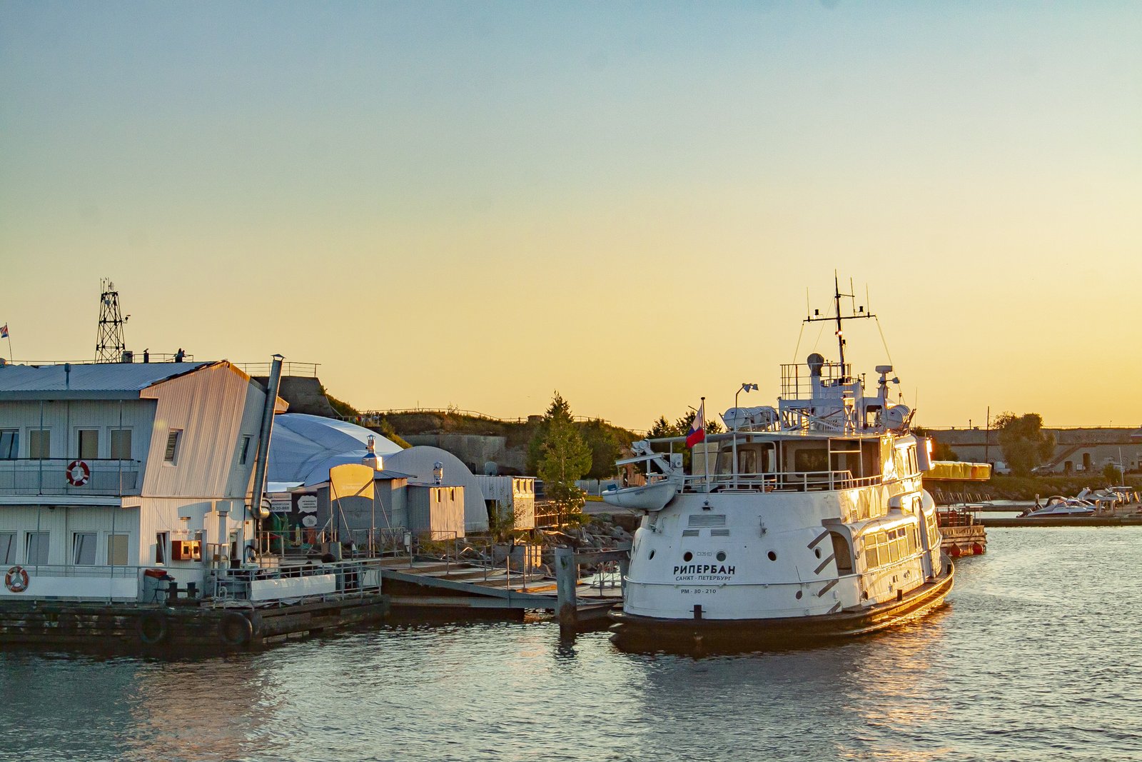 While we were sitting on the deck of a large pleasure boat, gazing at the surface of the sea and the forts, the day imperceptibly came to an end. In the rays of the setting sun, the walls of the sea fortifications looked golden. The lack of sea motion practically did not create the feeling that we were actually taking a boat trip.