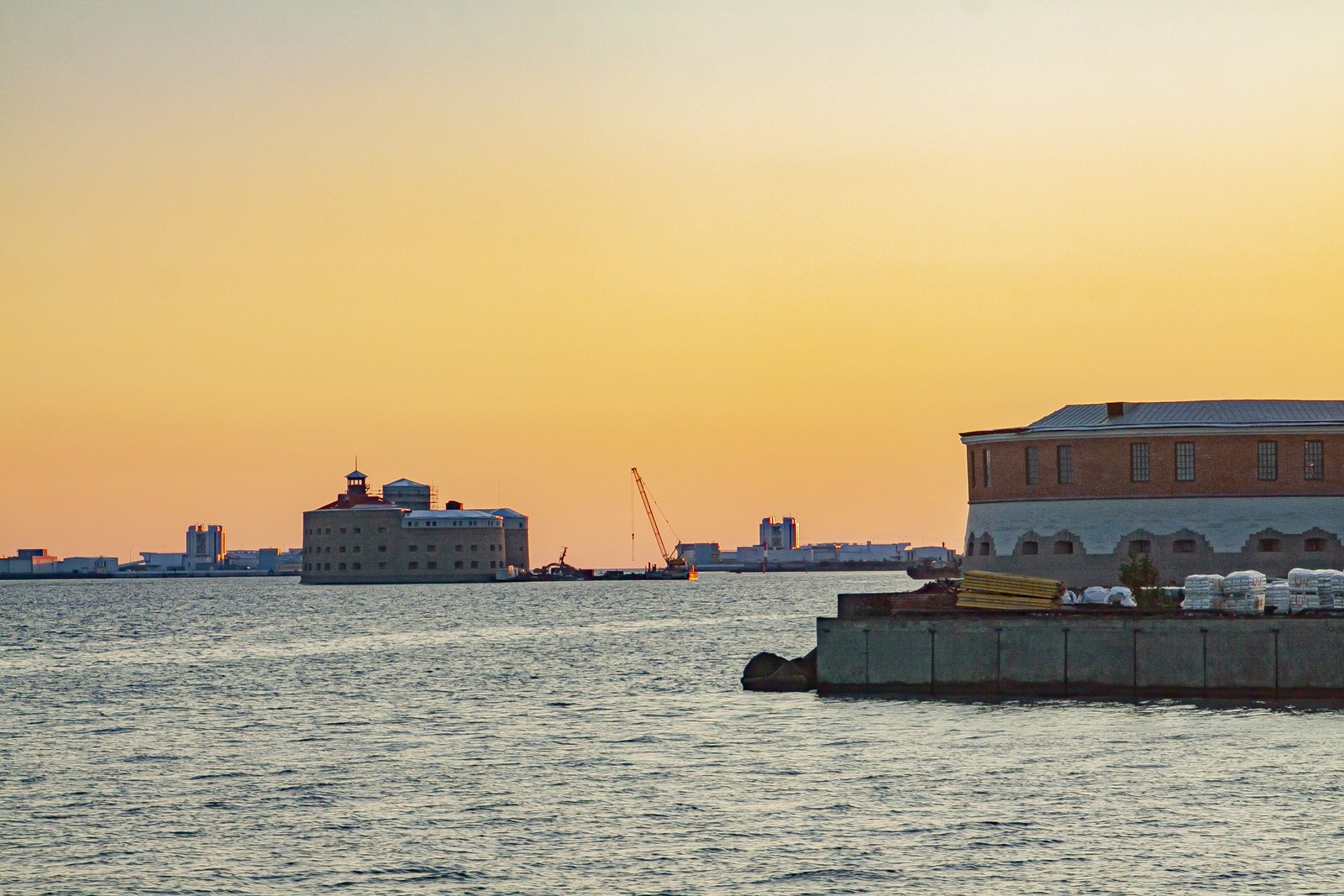 Пока мы сидели на палубе большого прогулочного катера, всматриваясь в гладь моря и в сооружения фортов, день незаметно подхошёл к концу. В лучах закатного солнца стены морских укреплений казались золотыми. Отсутствие морской качки практически не создавало ощущения, что мы по сути совершаем морскую прогулку.
